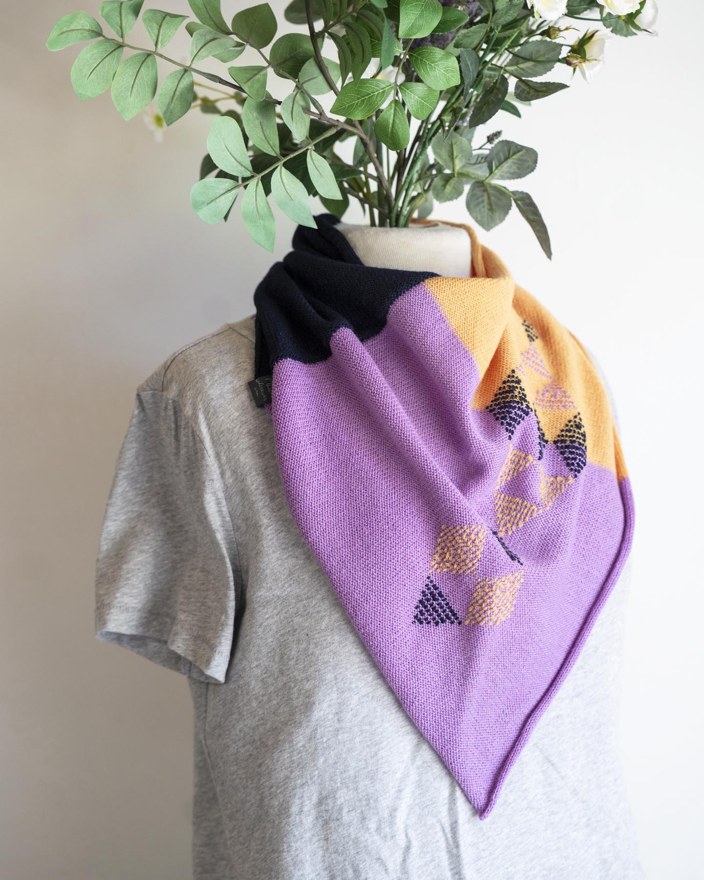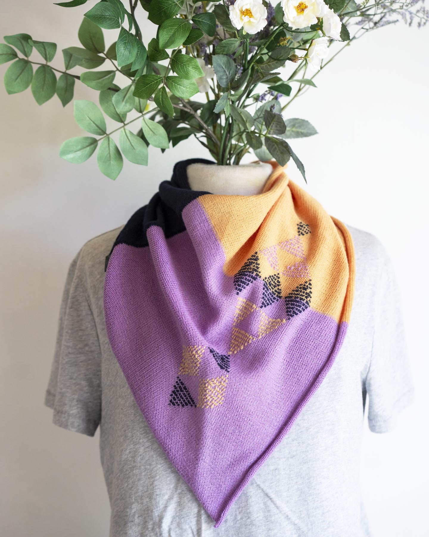 This is a one-piece bandana-style scarf that slips over the head for an easy and cozy fit. Light, soft and warm with a cheerful pop of colour.