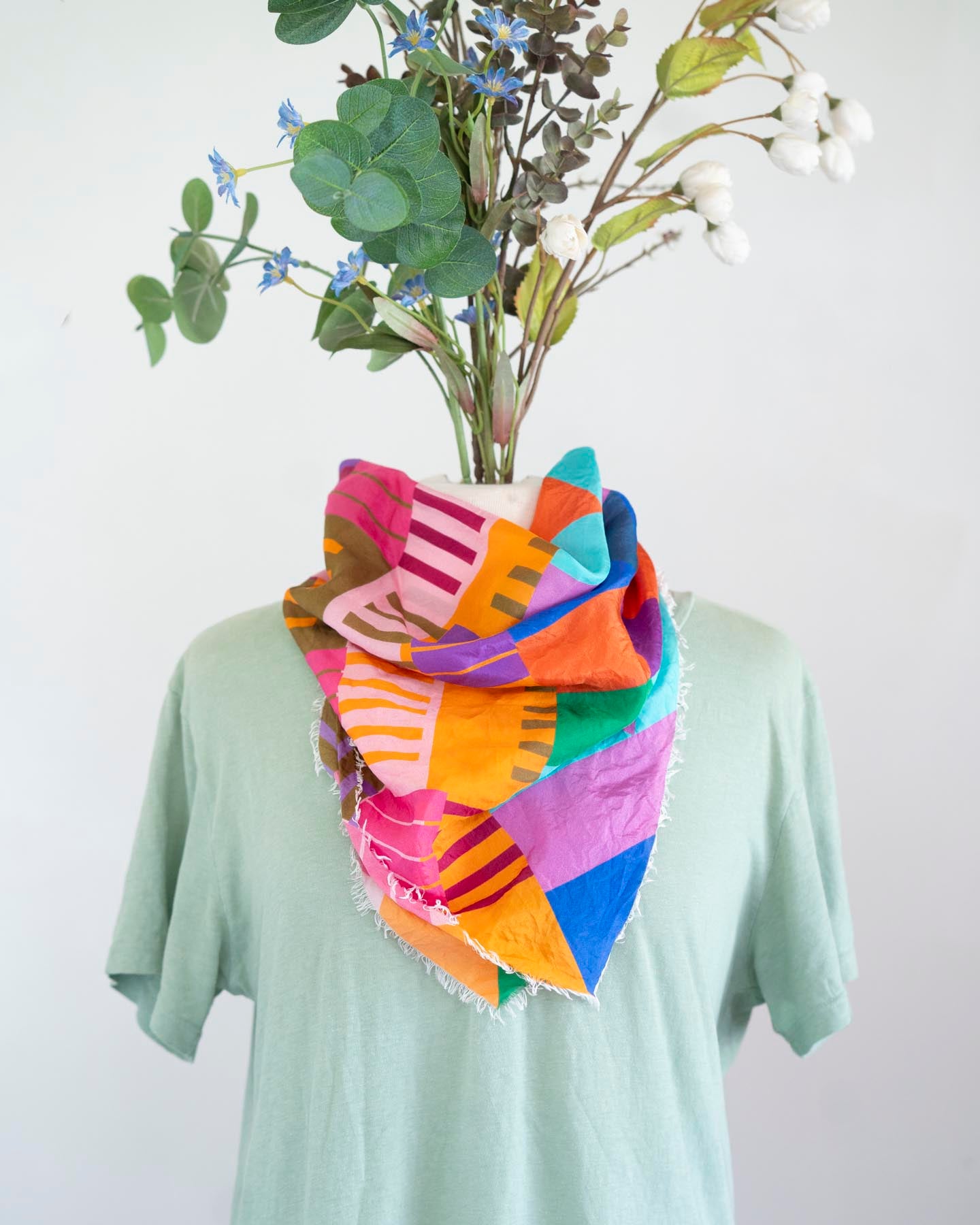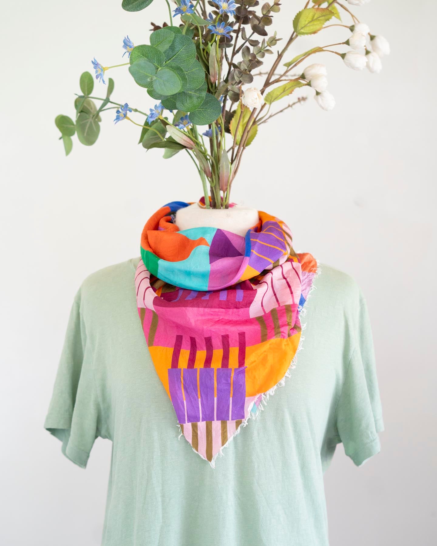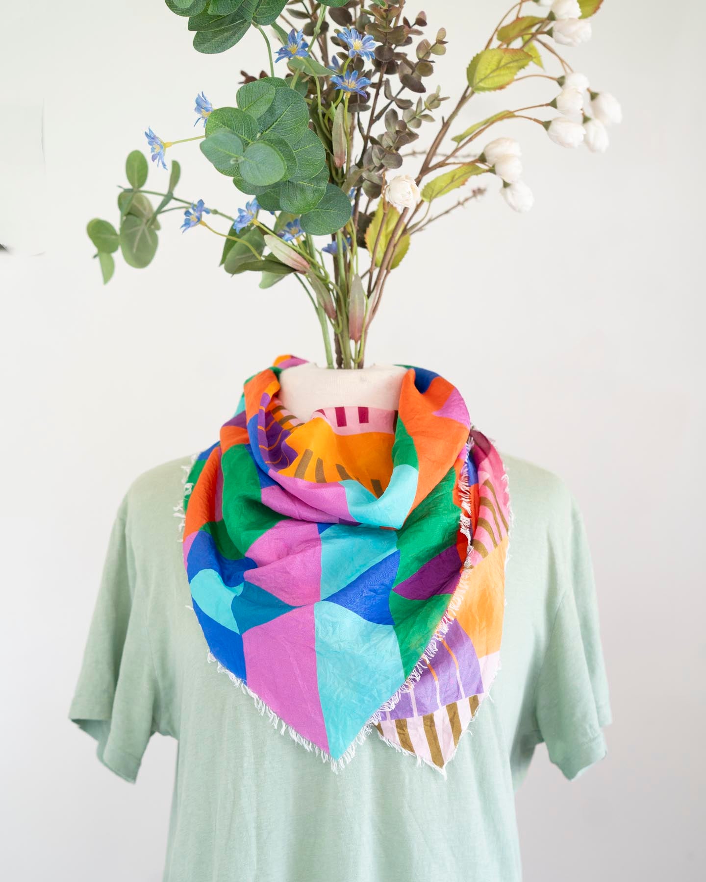 Autumn on the Plains Silk Bandana Scarf - Shapes