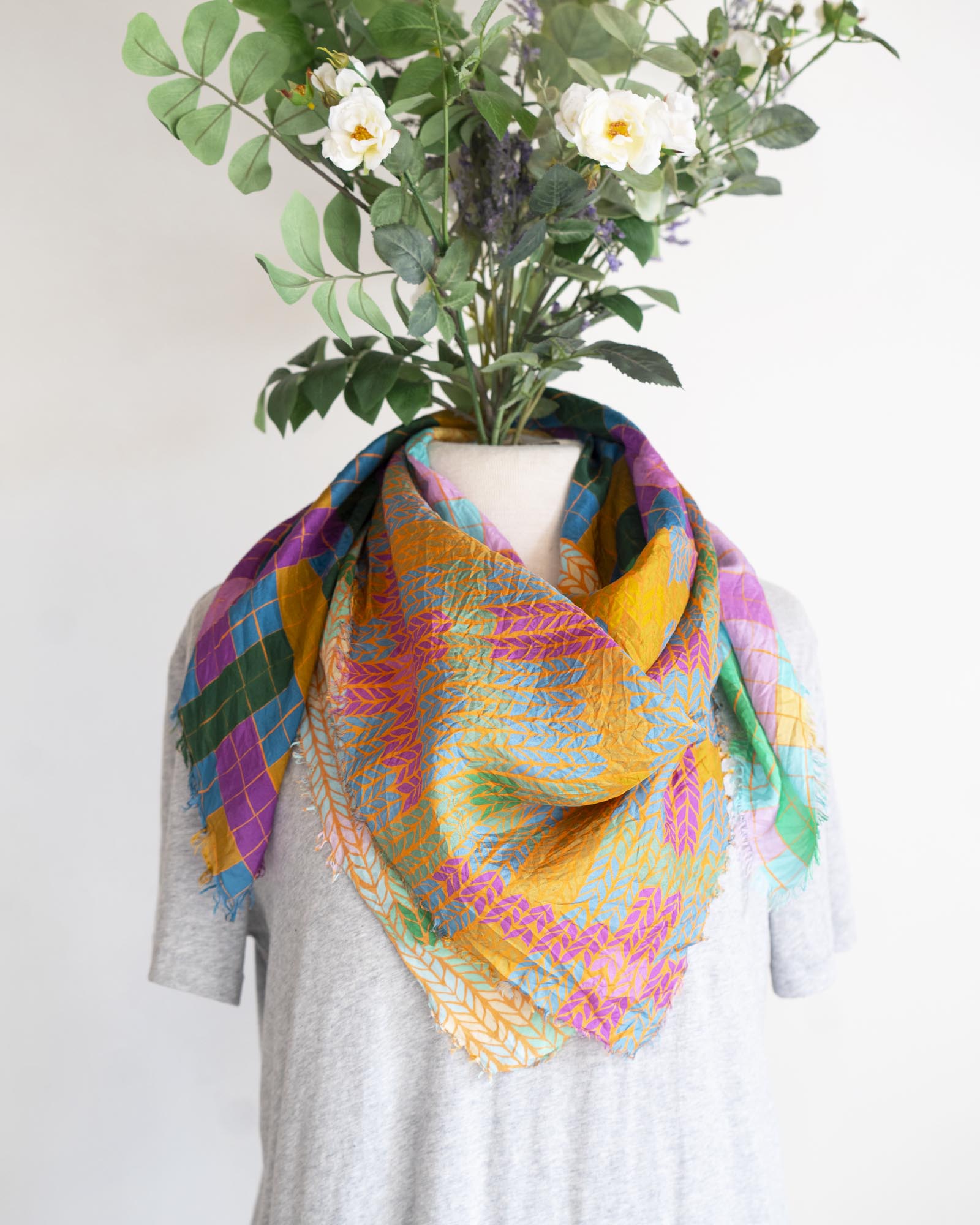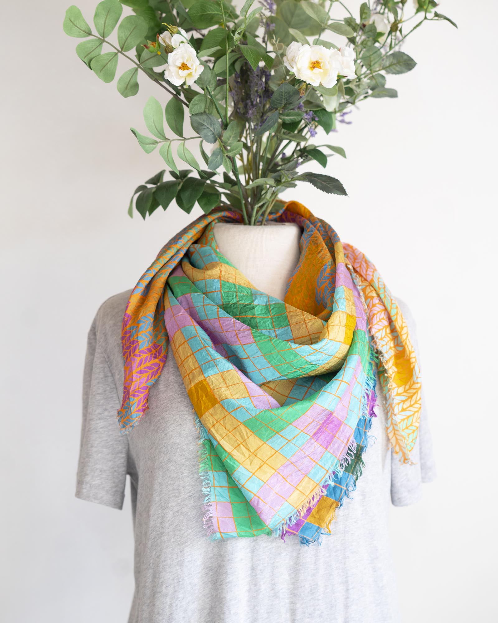 Made from a 100% Habotai silk, this scarf is slinky and smooth, with a beautiful drape to it when worn. This scarf is big enough to wear as a wild rag.