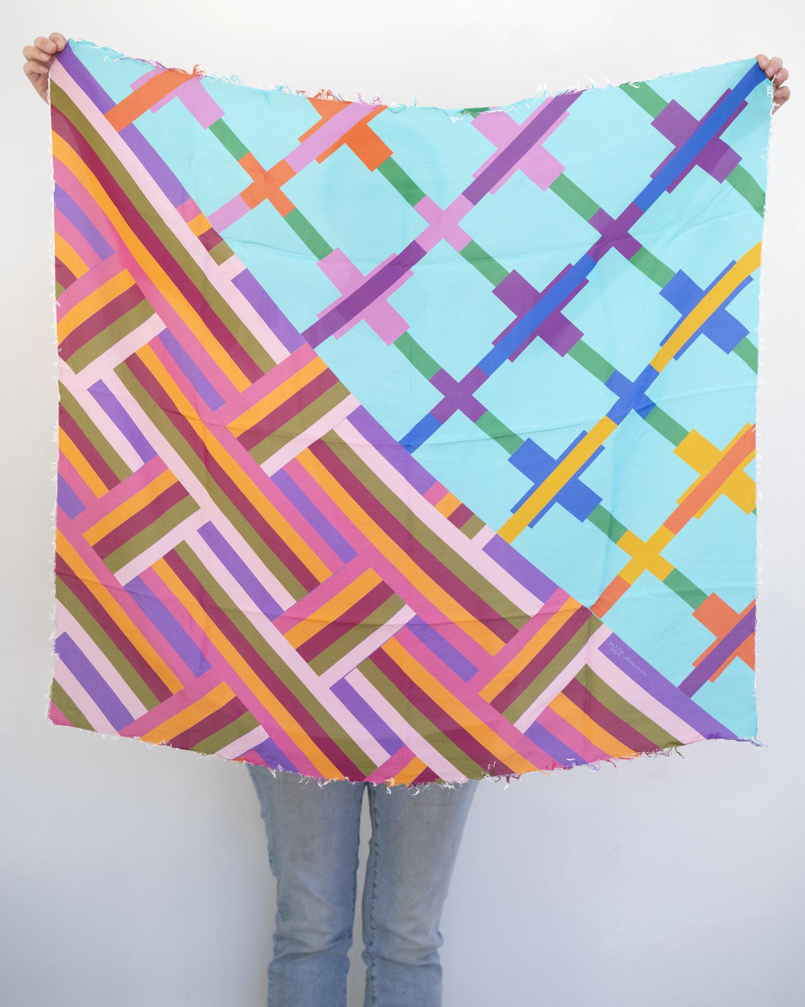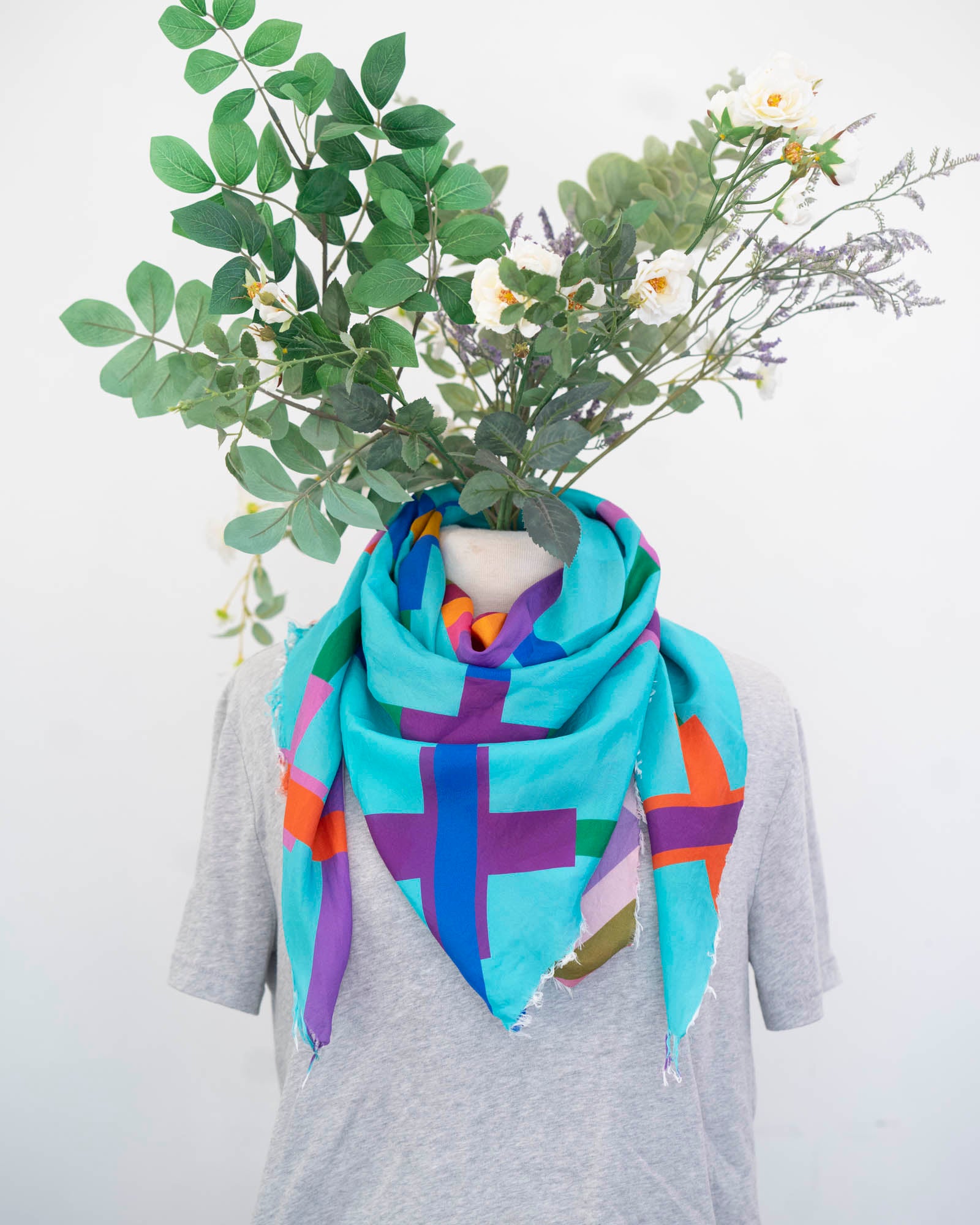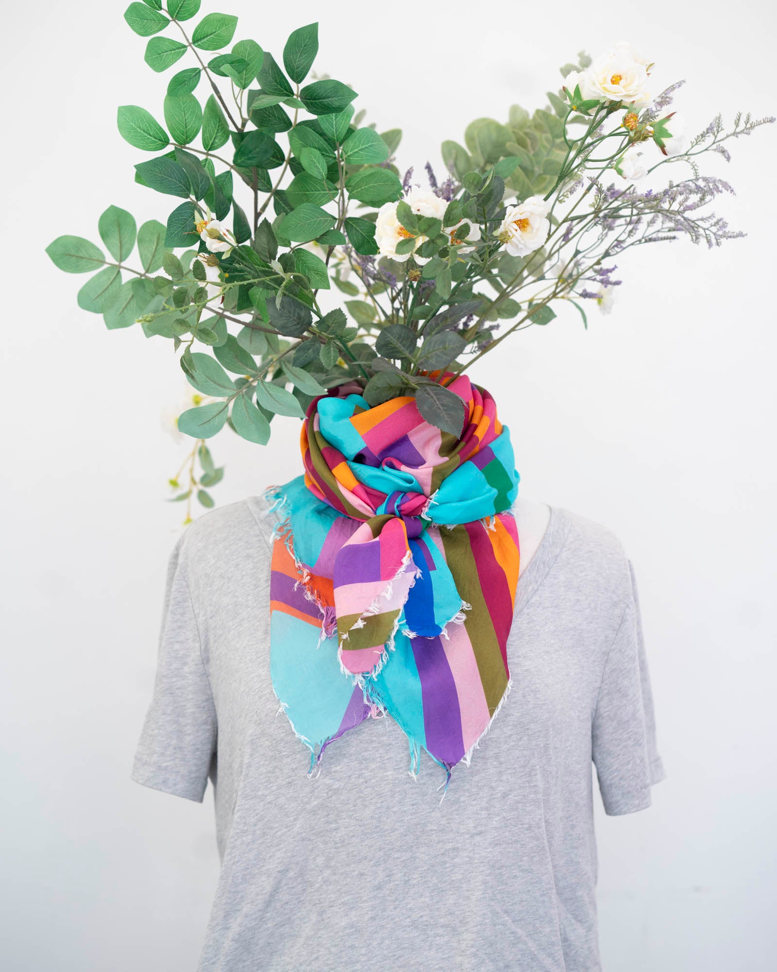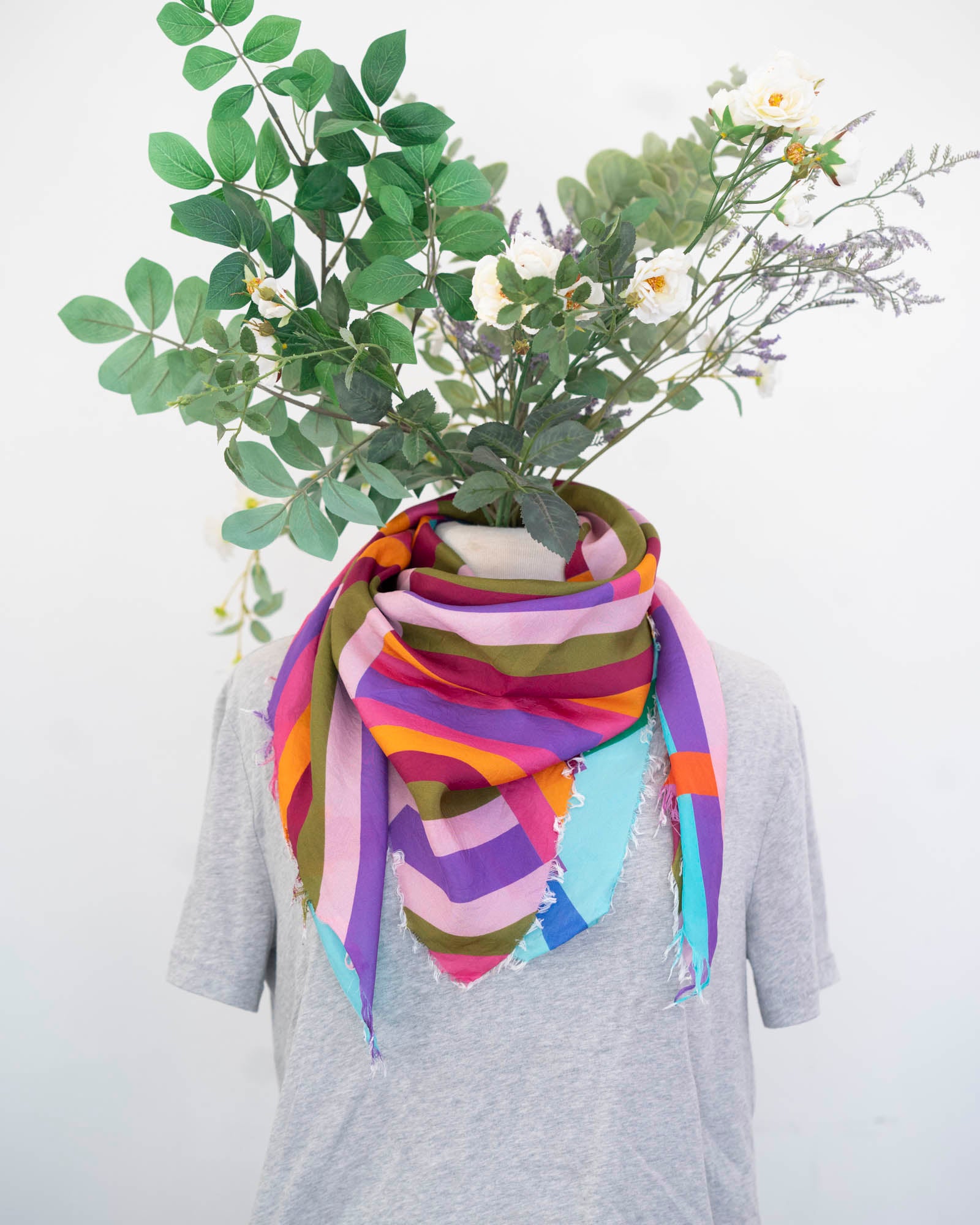 Colourful with a beautiful drape, there are so many ways to wear this scarf. Embrace the unique interplay of two totally different colour palettes and geometric designs.