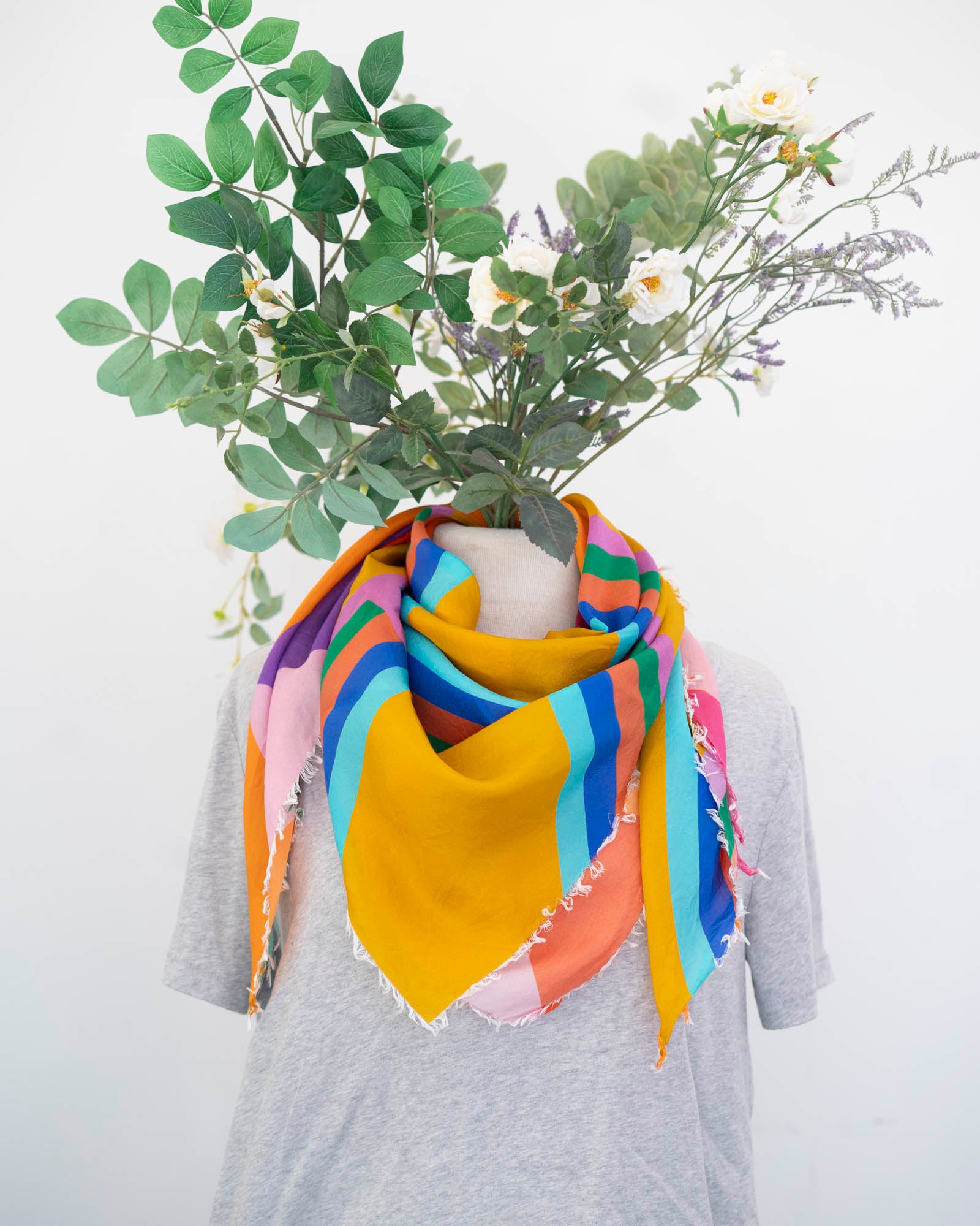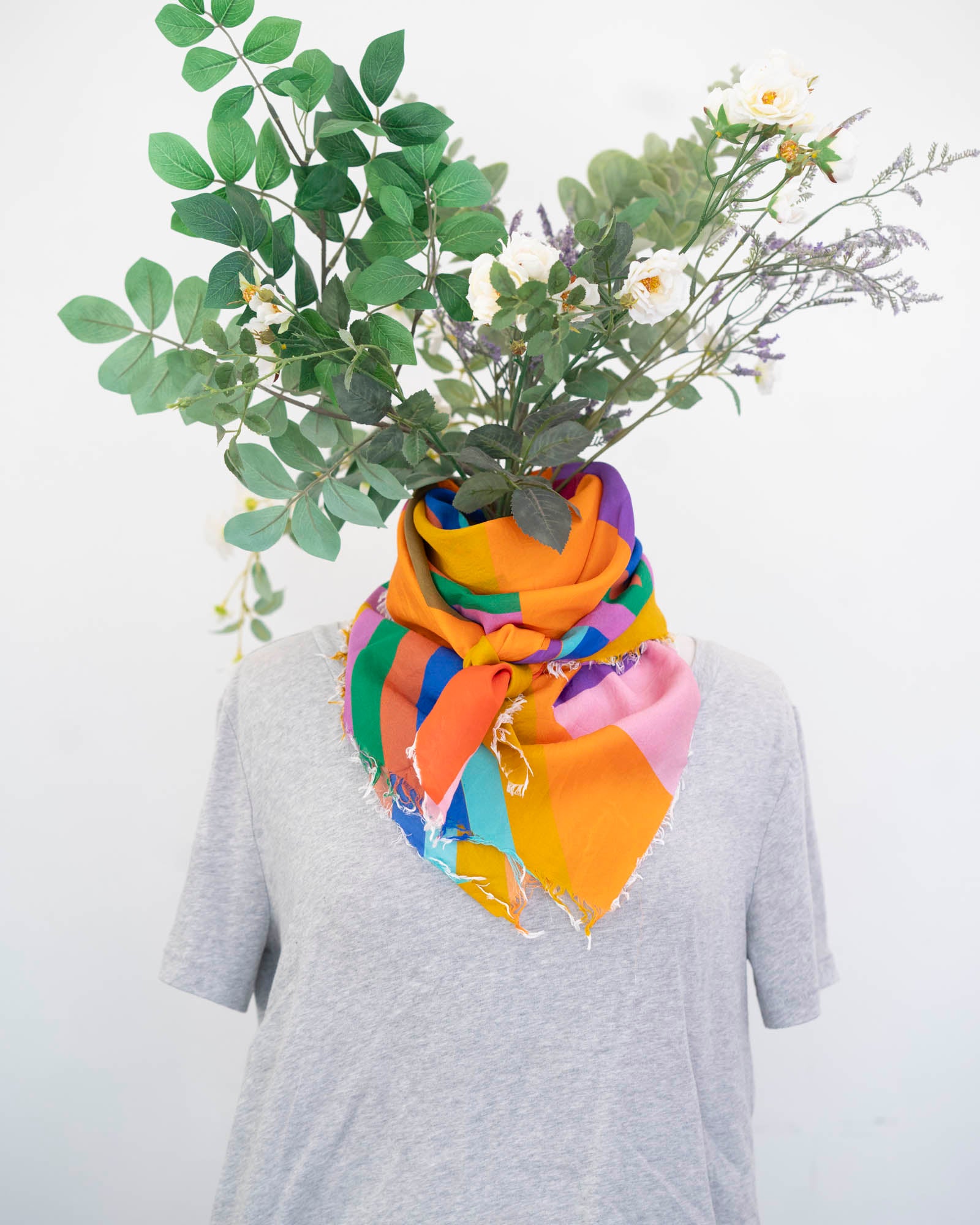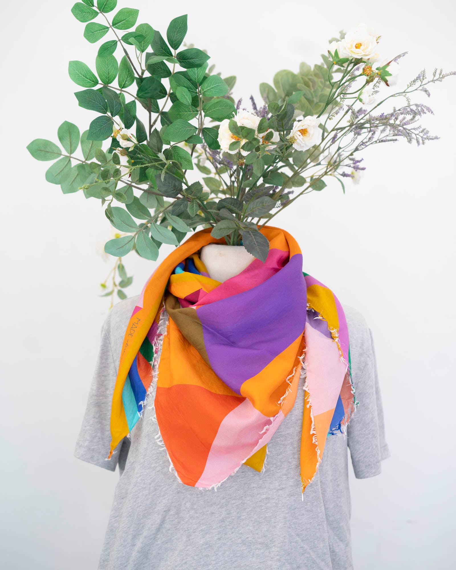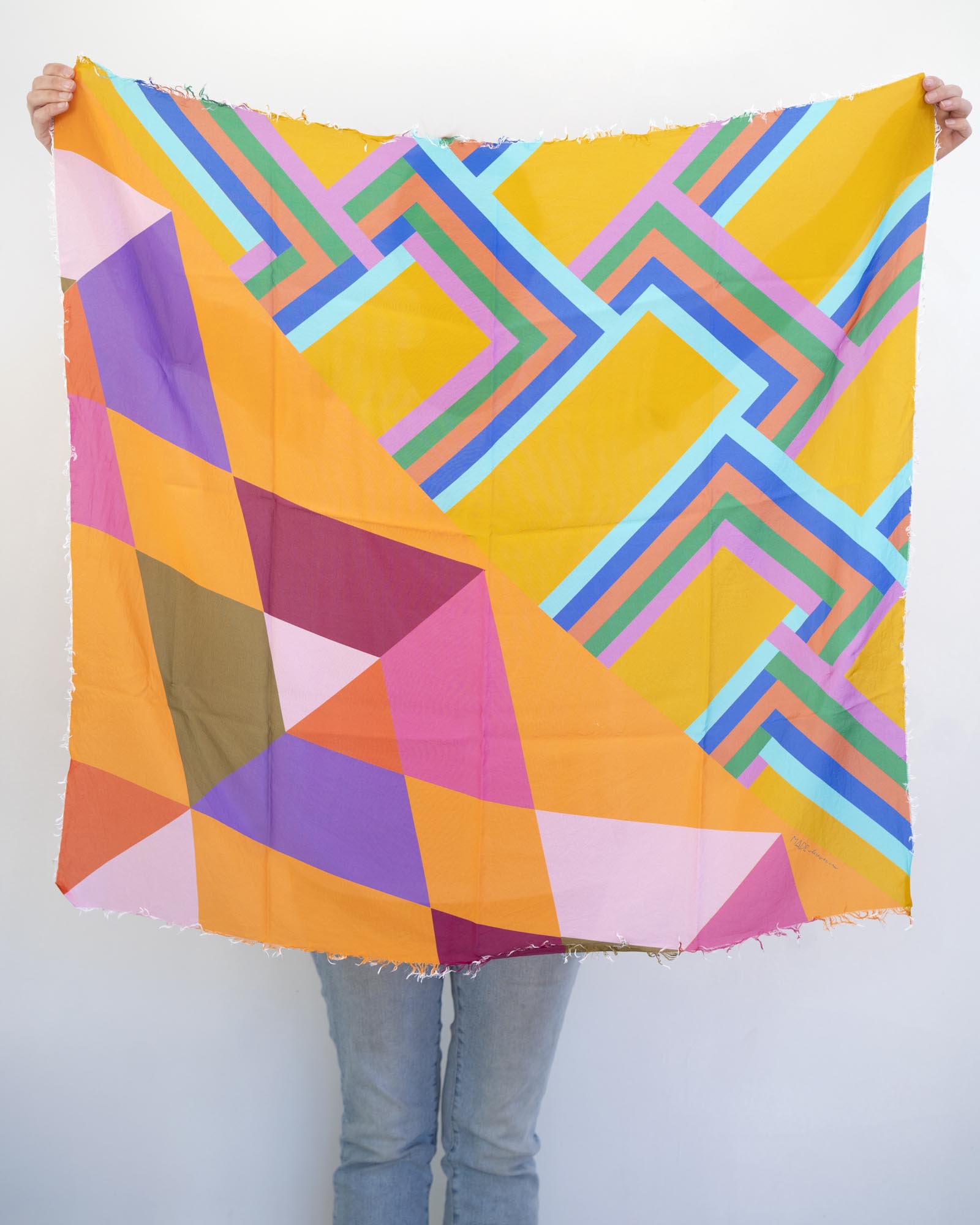 Colourful with a beautiful drape, there are so many ways to wear this scarf. Embrace the unique interplay of two totally different colour palettes and geometric designs.