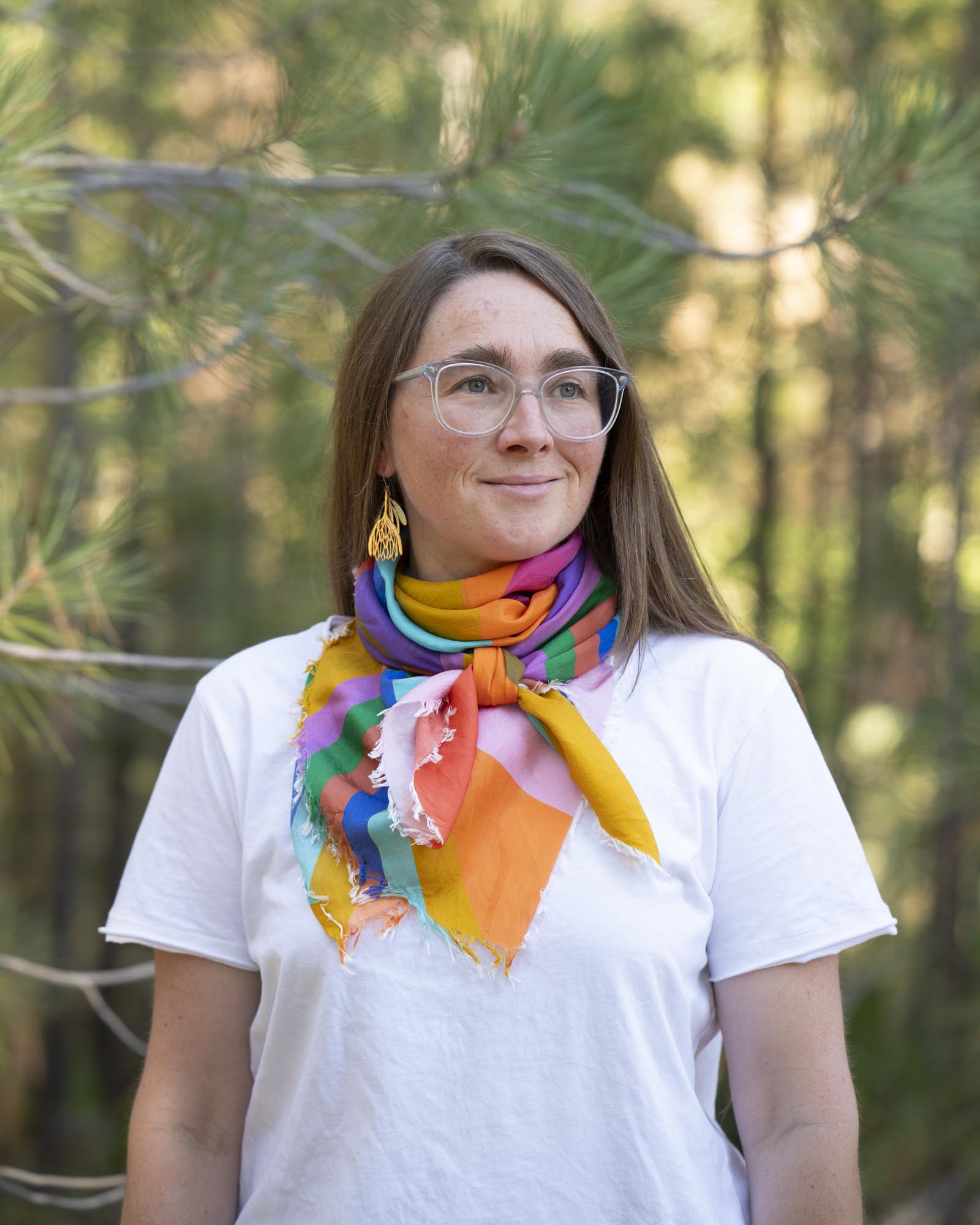 The geometric patterns were designed by Jess, cut and fringed in Truckee, California, the fabric was printed in the UK using GOTS Ecocare certified inks.