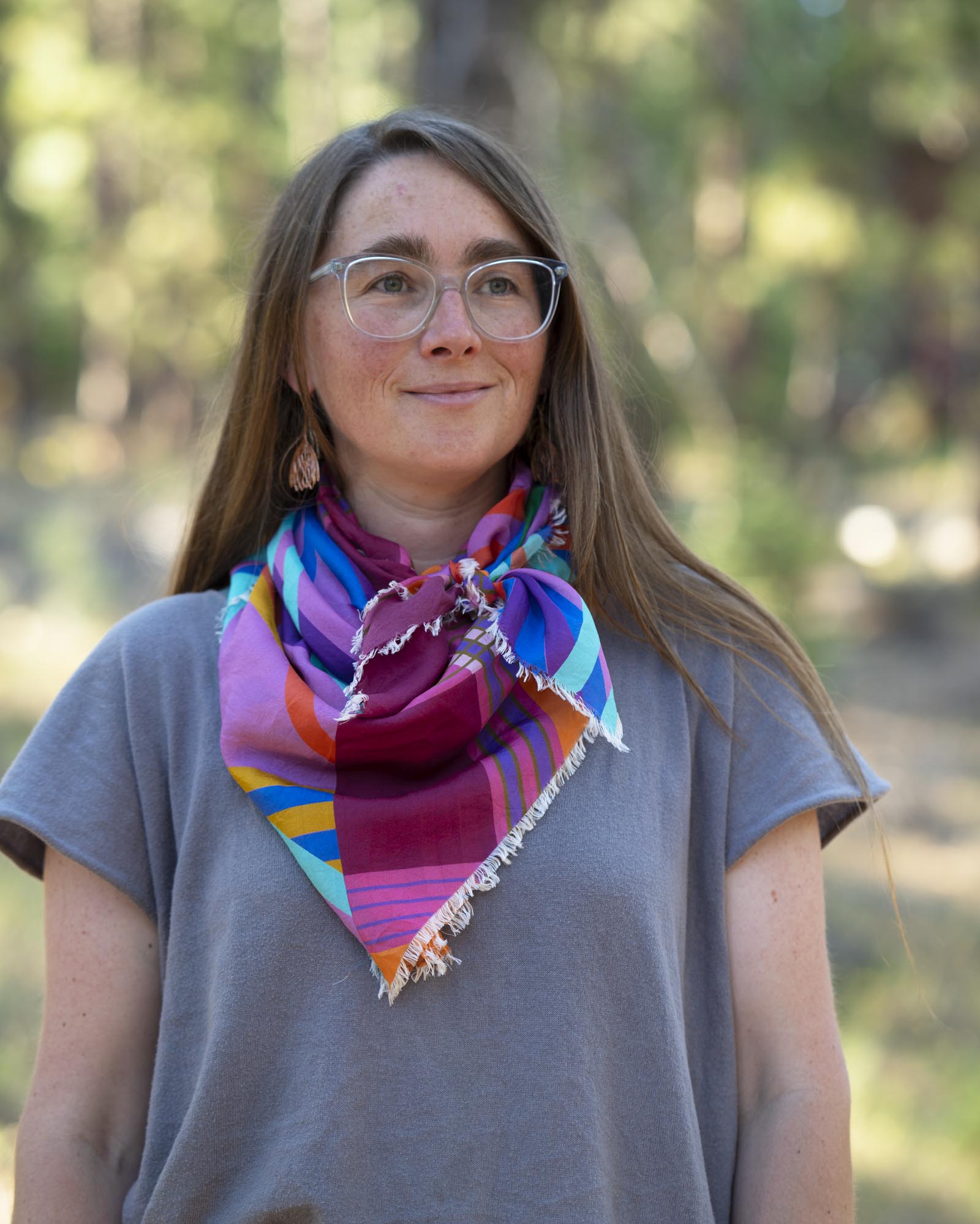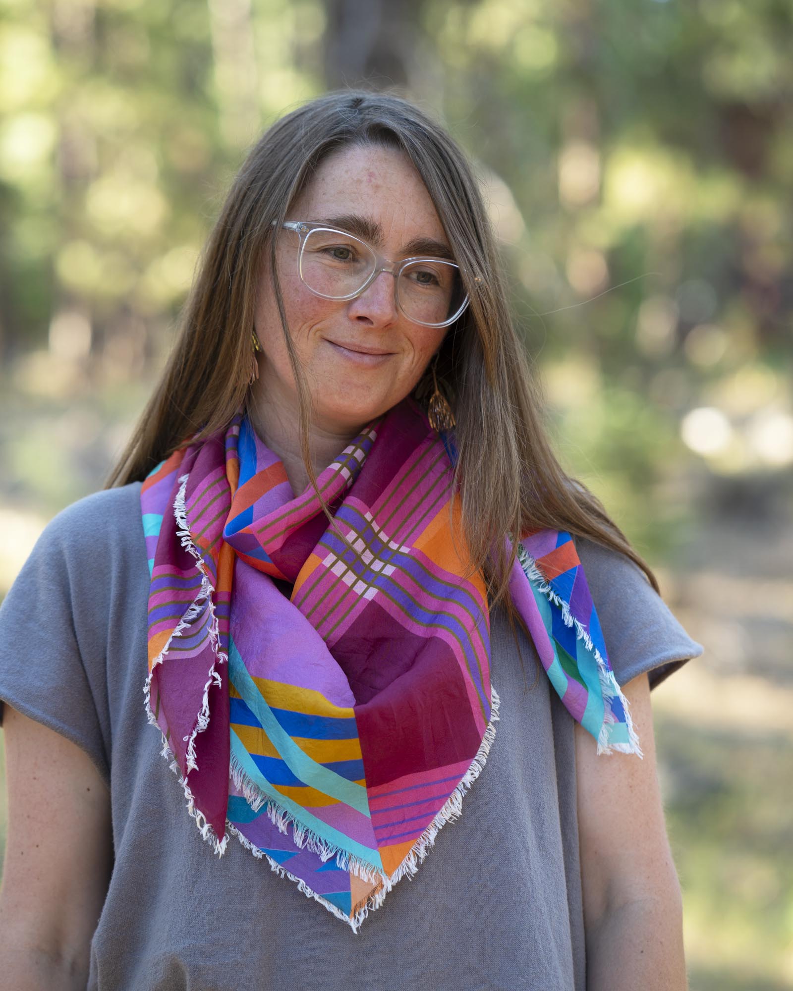 The geometric patterns were designed by Jess, cut and fringed in Truckee, California, the fabric was printed in the UK using GOTS Ecocare certified inks.