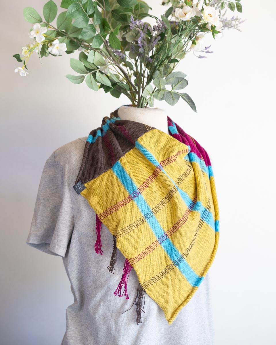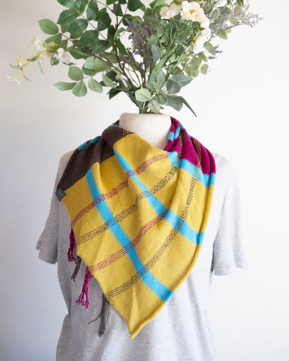 This is a one-piece bandana-style scarf that slips over the head for an easy and comfortable fit. Lightweight and soft with a cheerful pop of colour, perfect for all seasons.