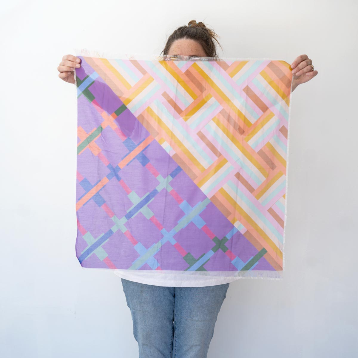 Colourful with a beautiful drape, there are so many ways to wear this scarf. Embrace the unique interplay of two totally different colour palettes and geometric designs.