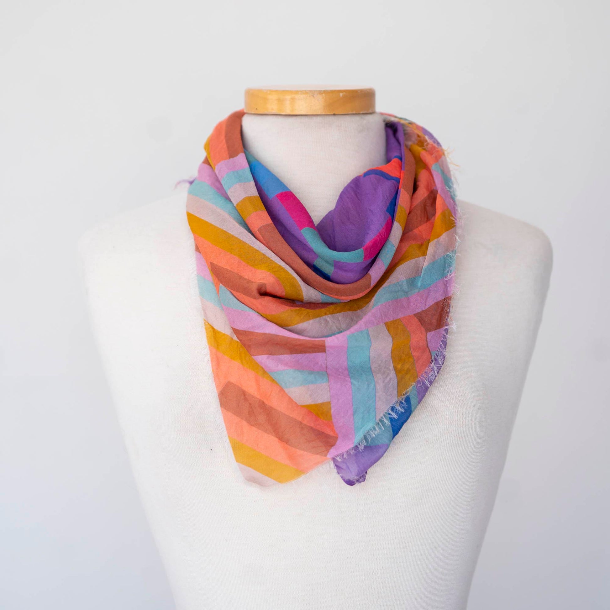 Made from 70% cotton and 30% silk, this semi-sheer scarf is soft, light and colourful.