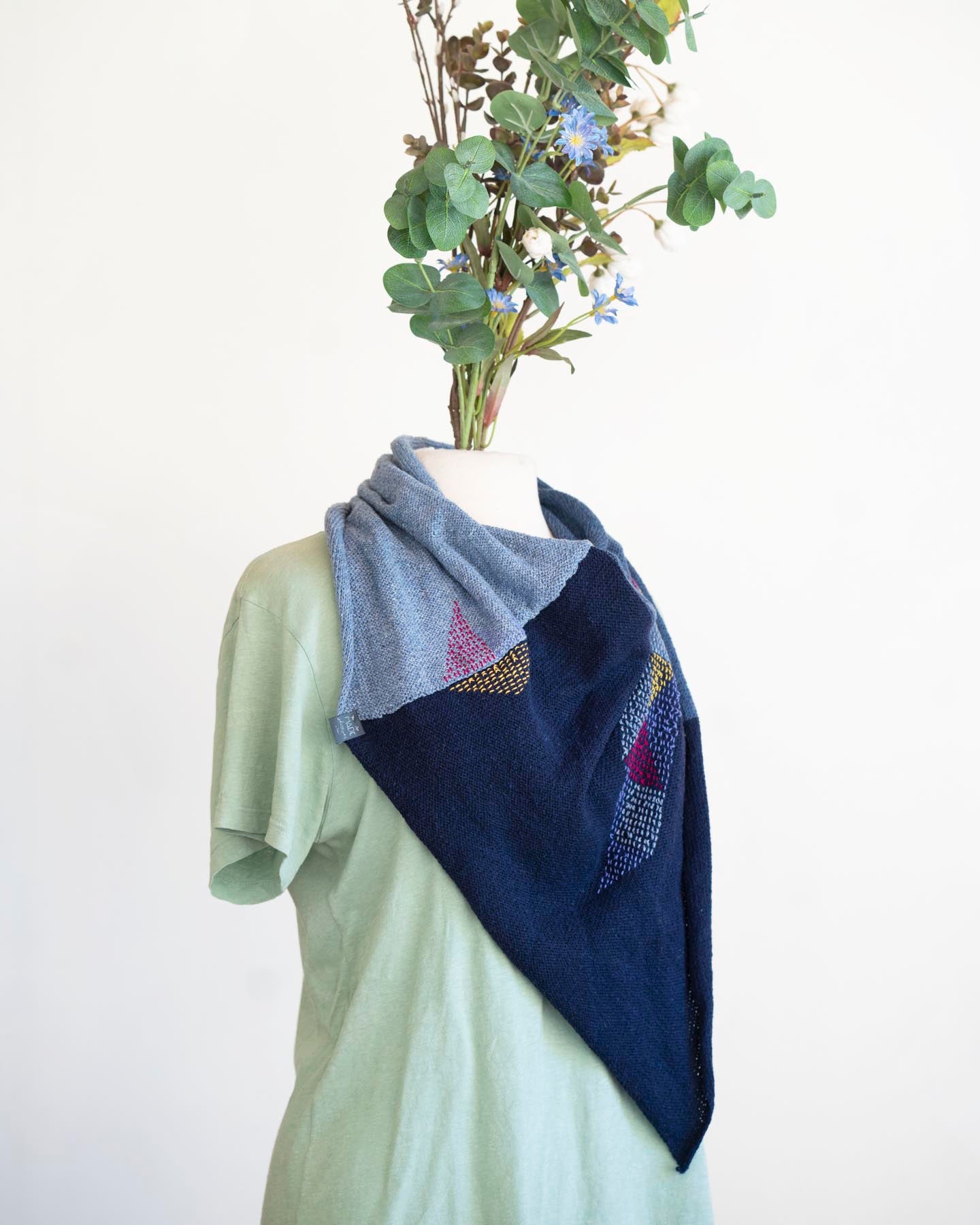 It is knit from 100% recycled yarn consisting of cotton from jeans and denim clothing, mixed with used plastic bottles. A colourful abstract design is woven in using GOTS certified organic cotton.
