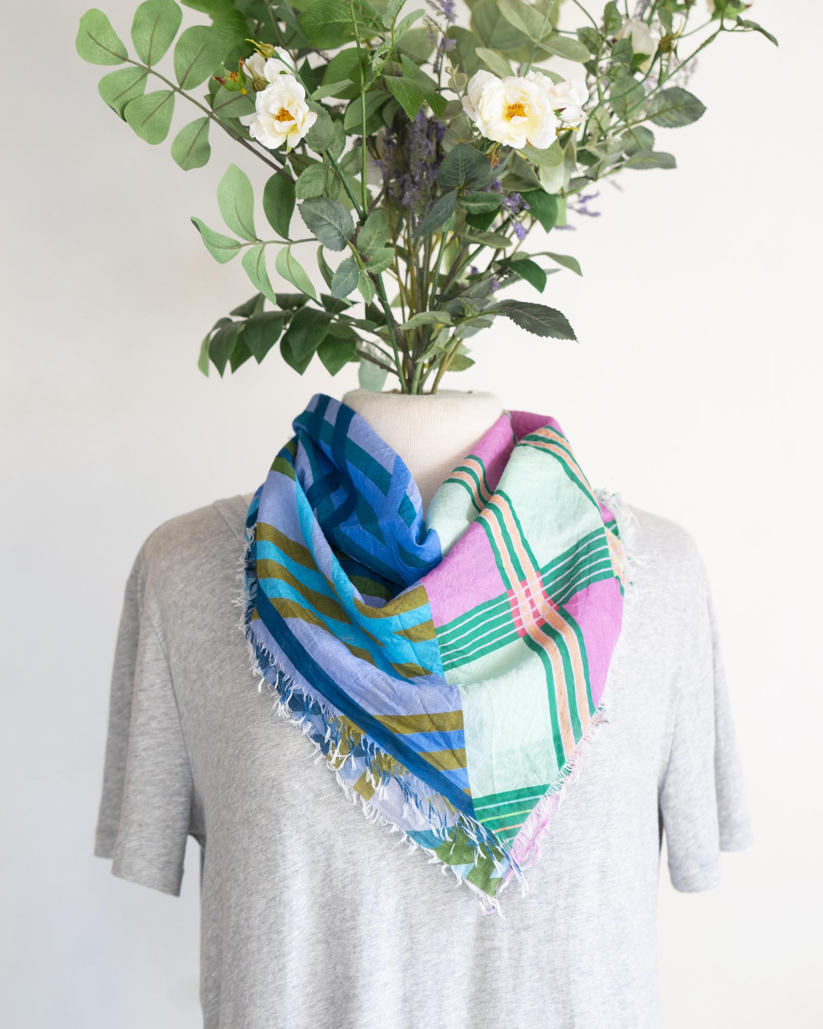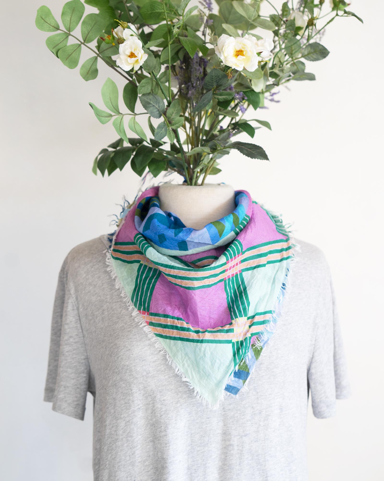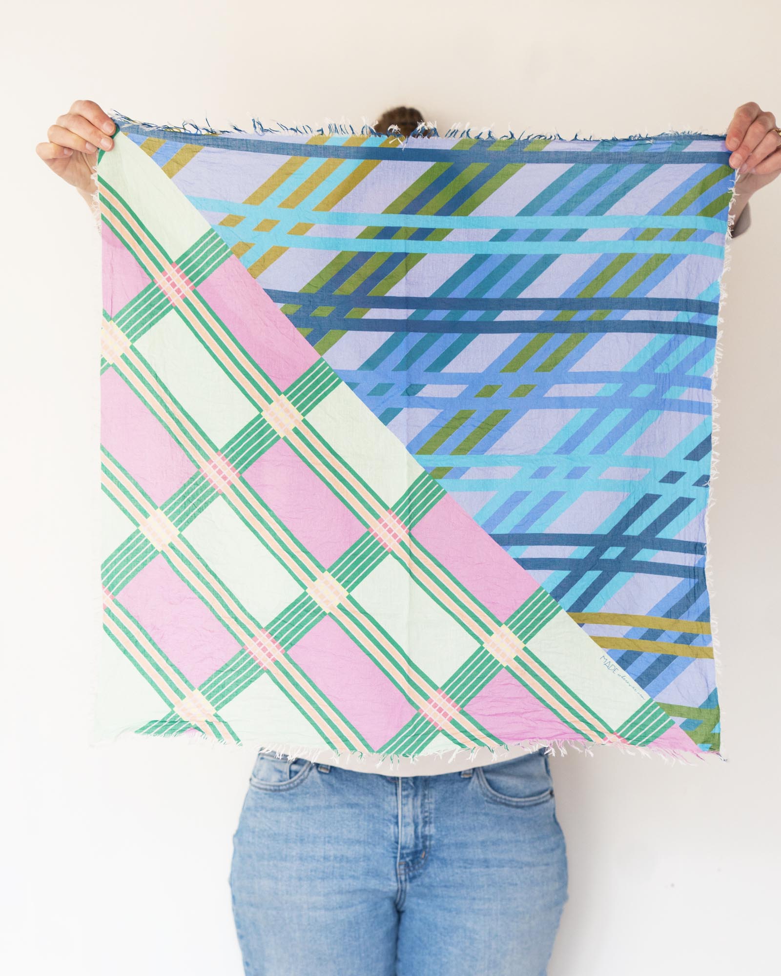 Colourful and lightweight, there are so many ways to wear this scarf. Embrace the unique interplay of two totally different colour palettes and geometric designs.