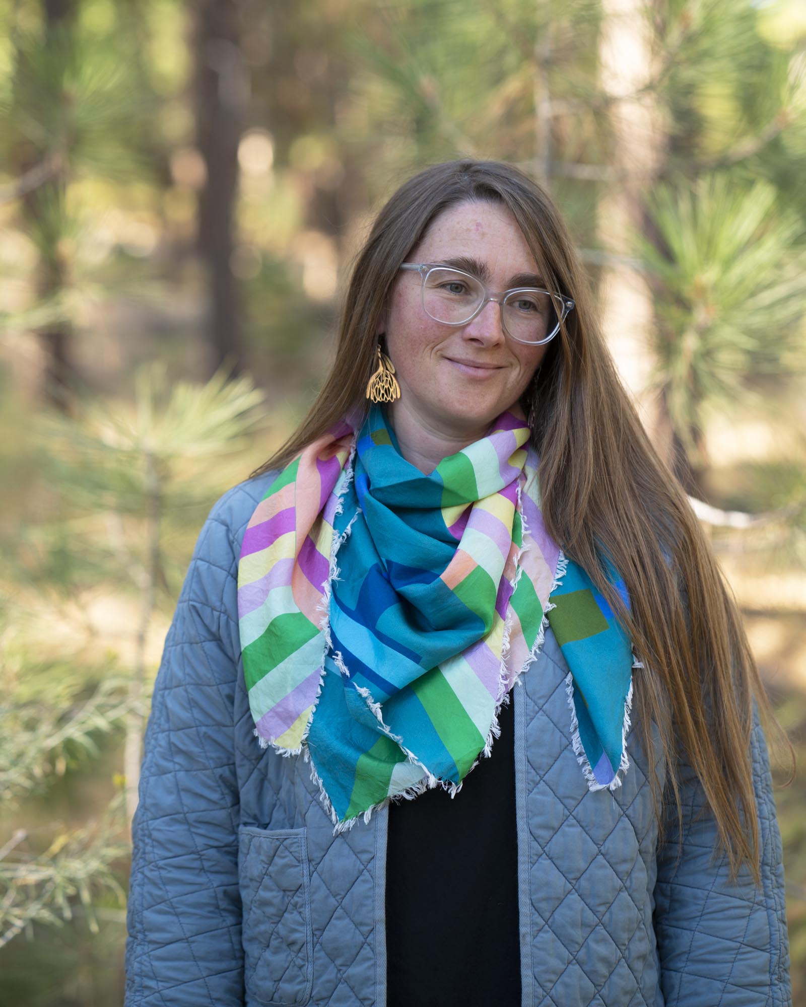 The geometric patterns were designed by Jess, cut and fringed in Truckee, California, the fabric was printed in the UK using GOTS Ecocare certified inks.