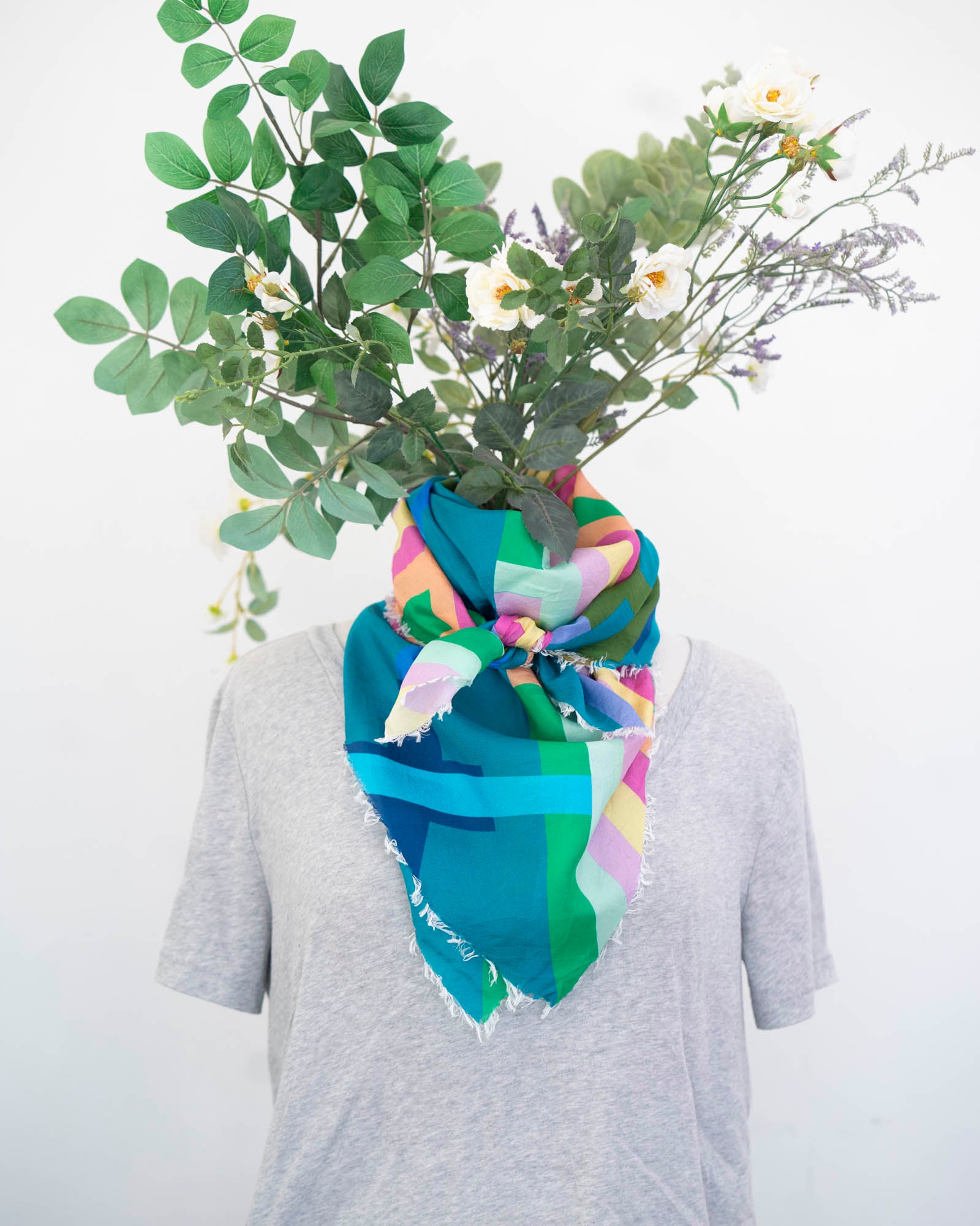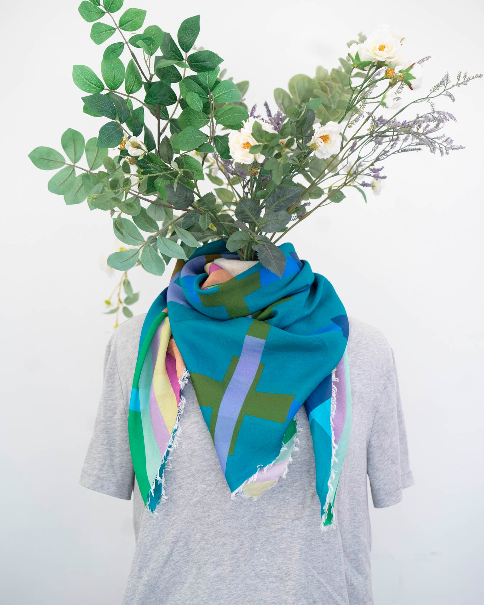 Colourful with a beautiful drape, there are so many ways to wear this scarf. Embrace the unique interplay of two totally different colour palettes and geometric designs.