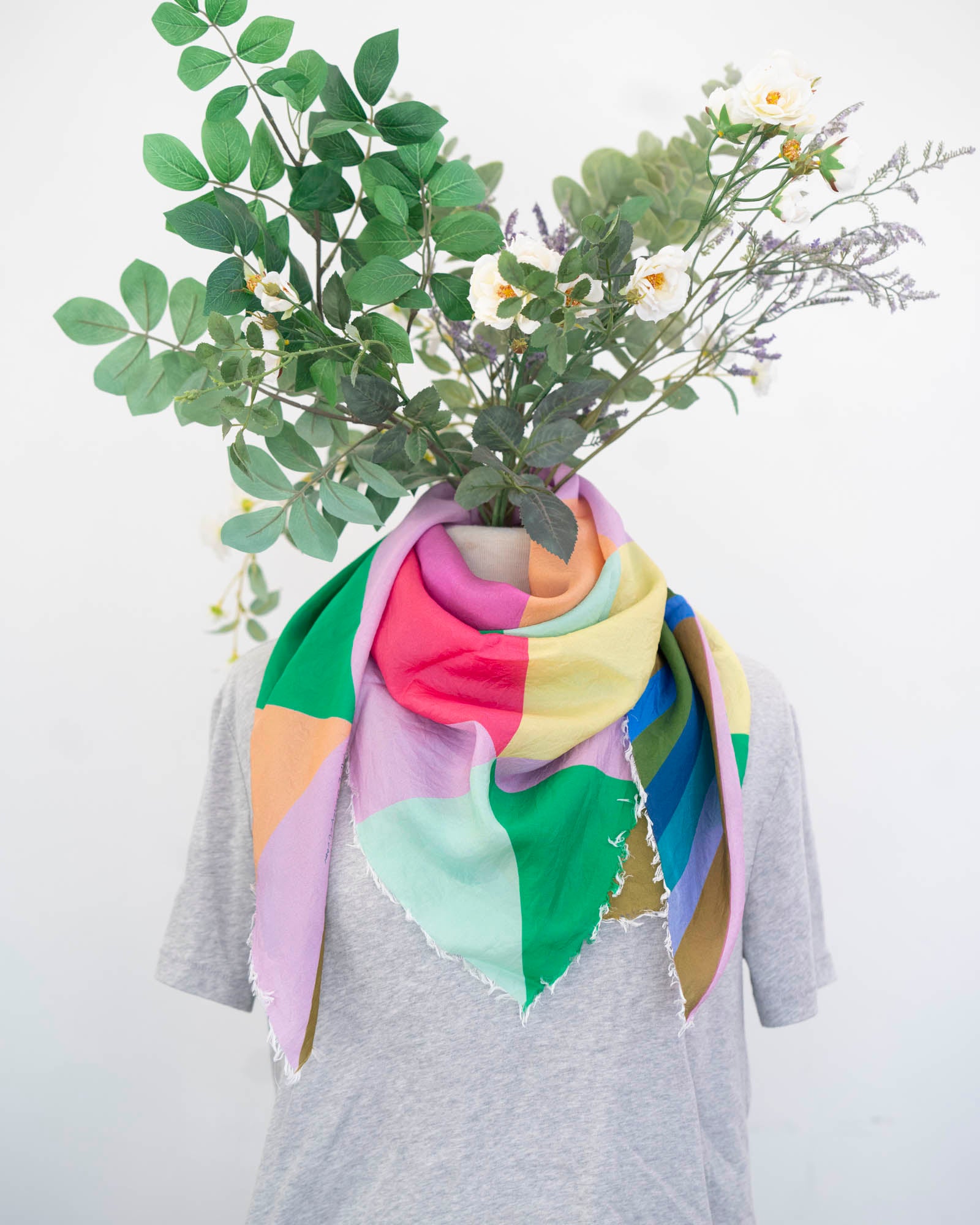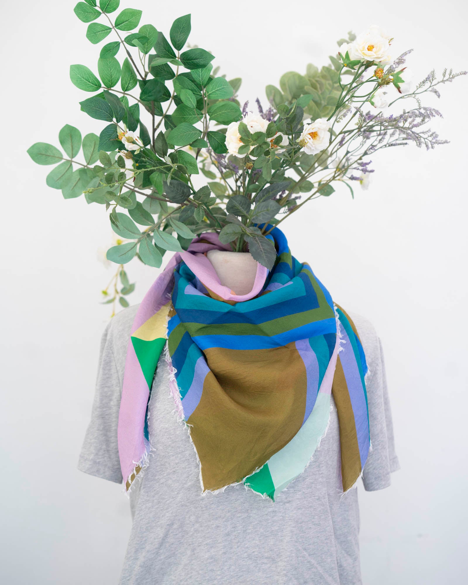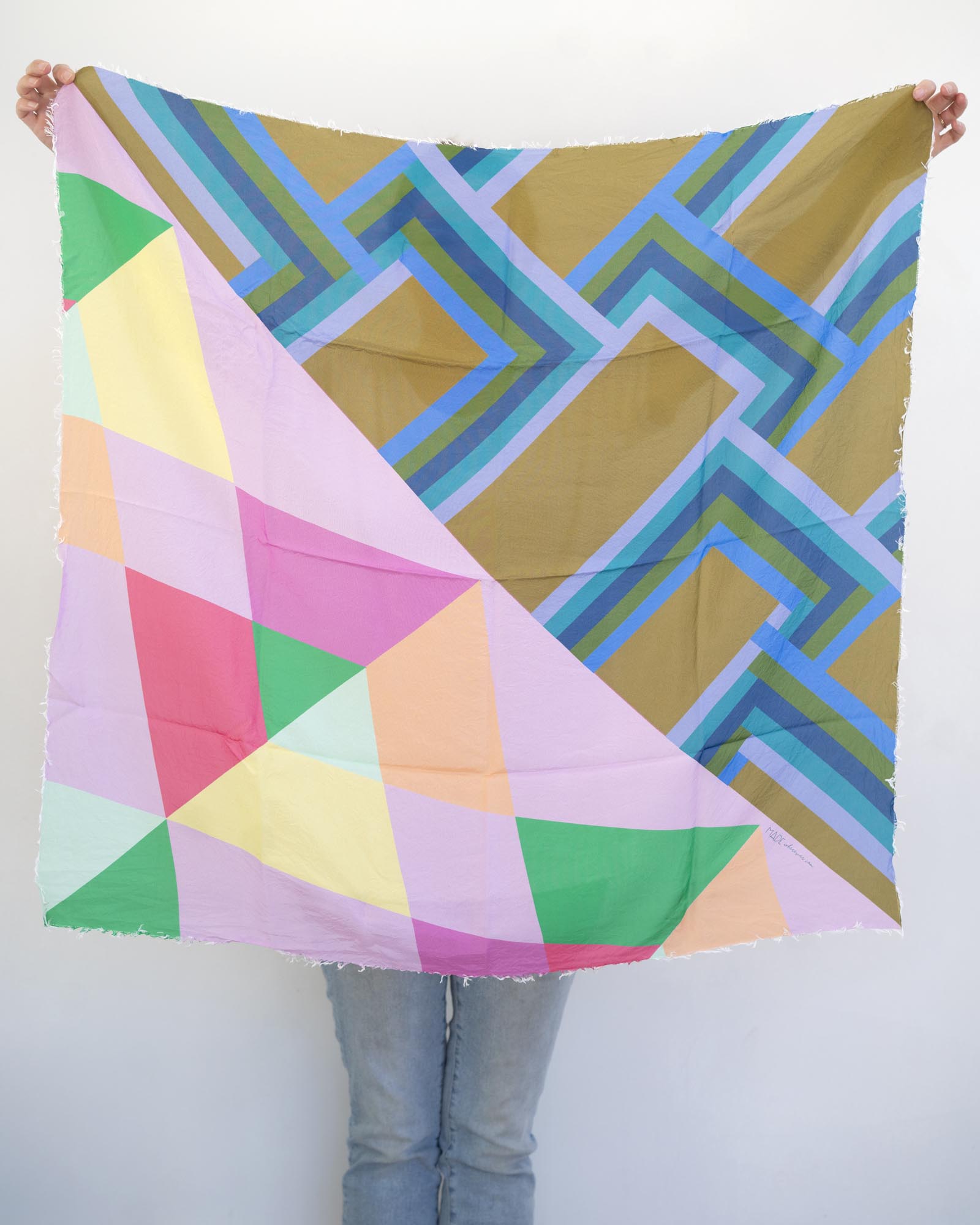Colourful with a beautiful drape, there are so many ways to wear this scarf. Embrace the unique interplay of two totally different colour palettes and geometric designs.
