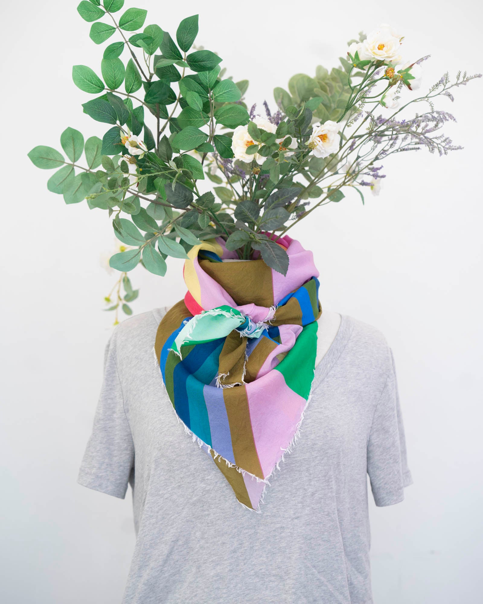 Made from a 100% Habotai silk, this scarf is slinky and smooth, with a beautiful drape to it when worn. This scarf is big enough to wear as a wild rag.