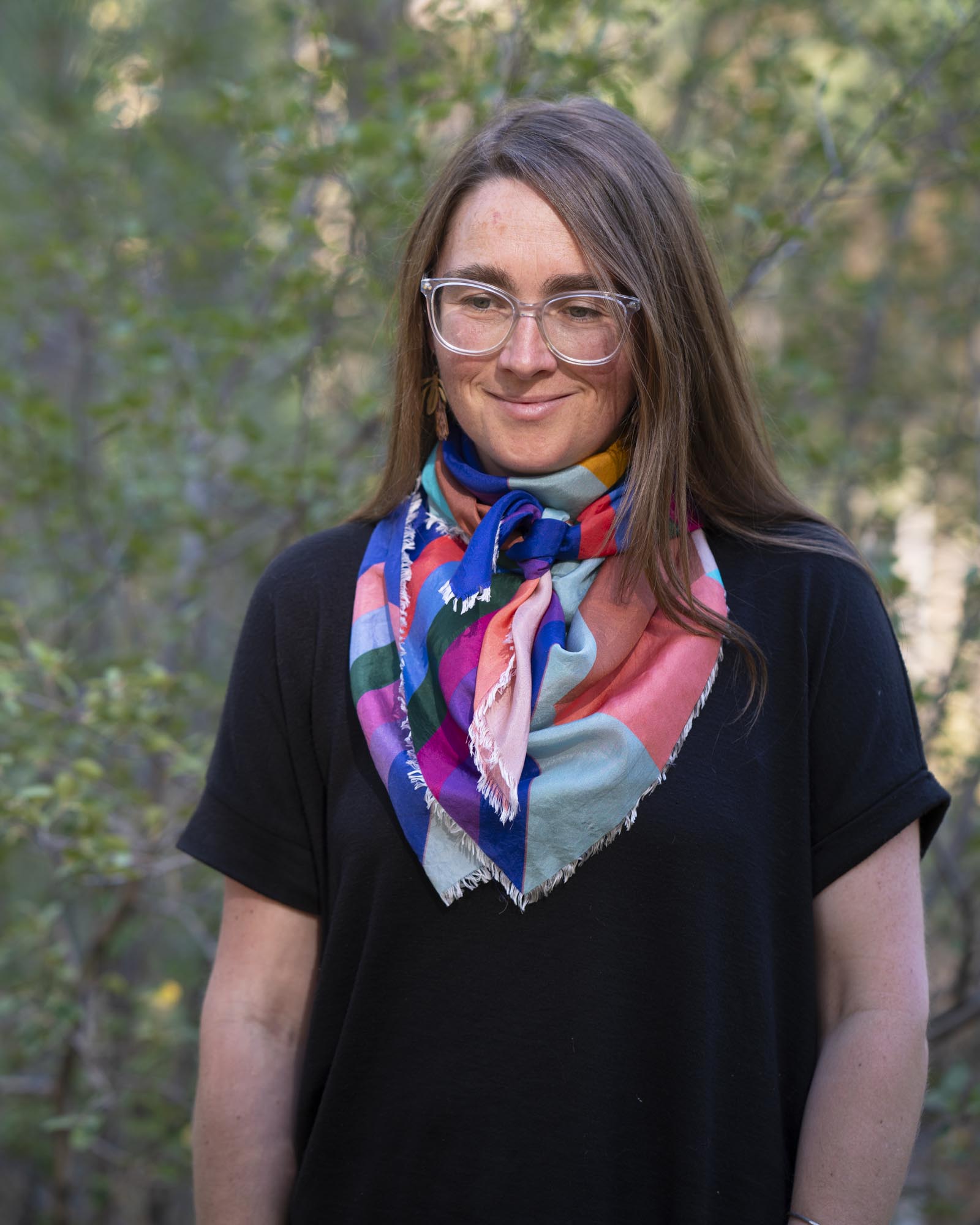 Made from a 100% Habotai silk, this scarf is slinky and smooth, with a beautiful drape to it when worn. This scarf is big enough to wear as a wild rag.