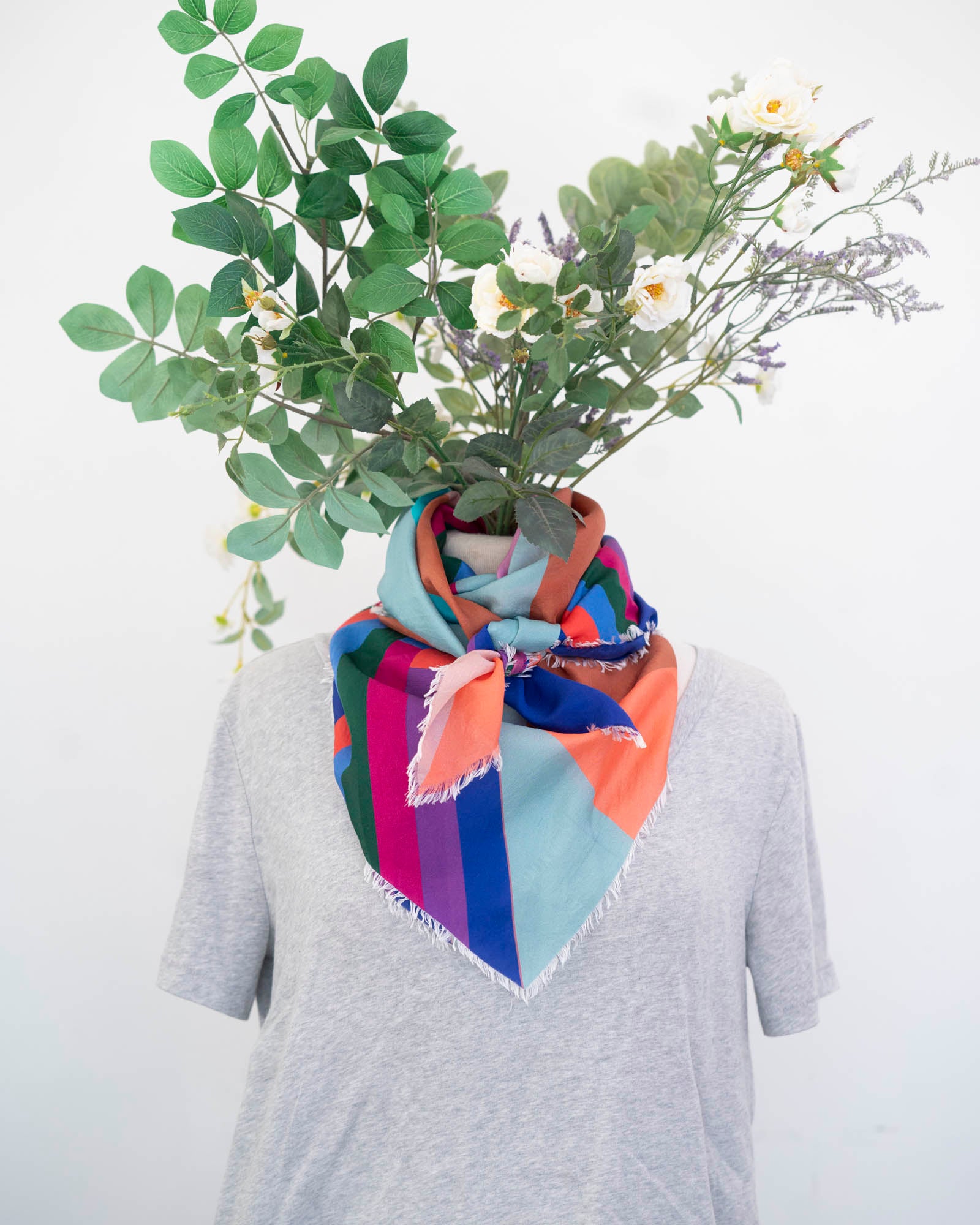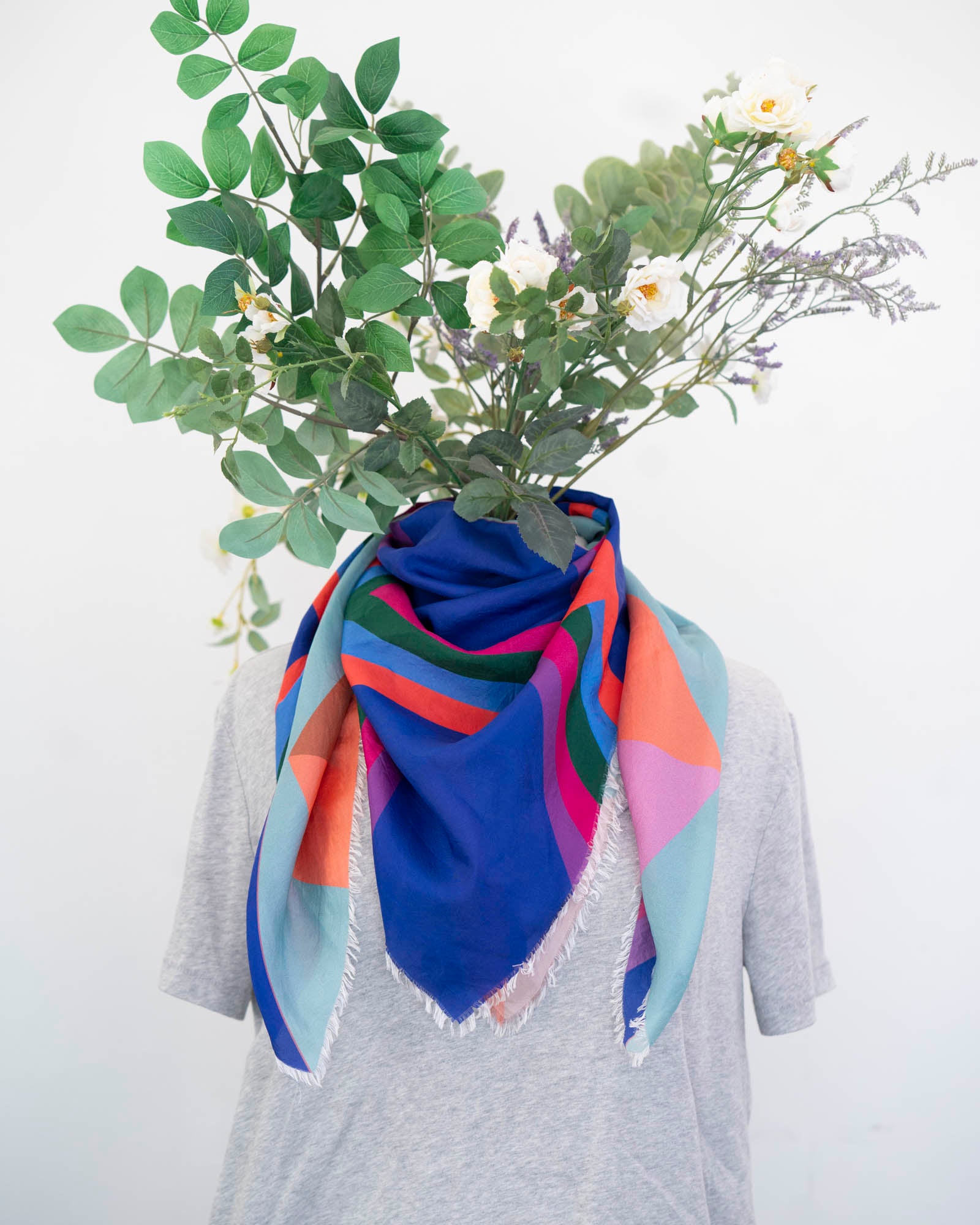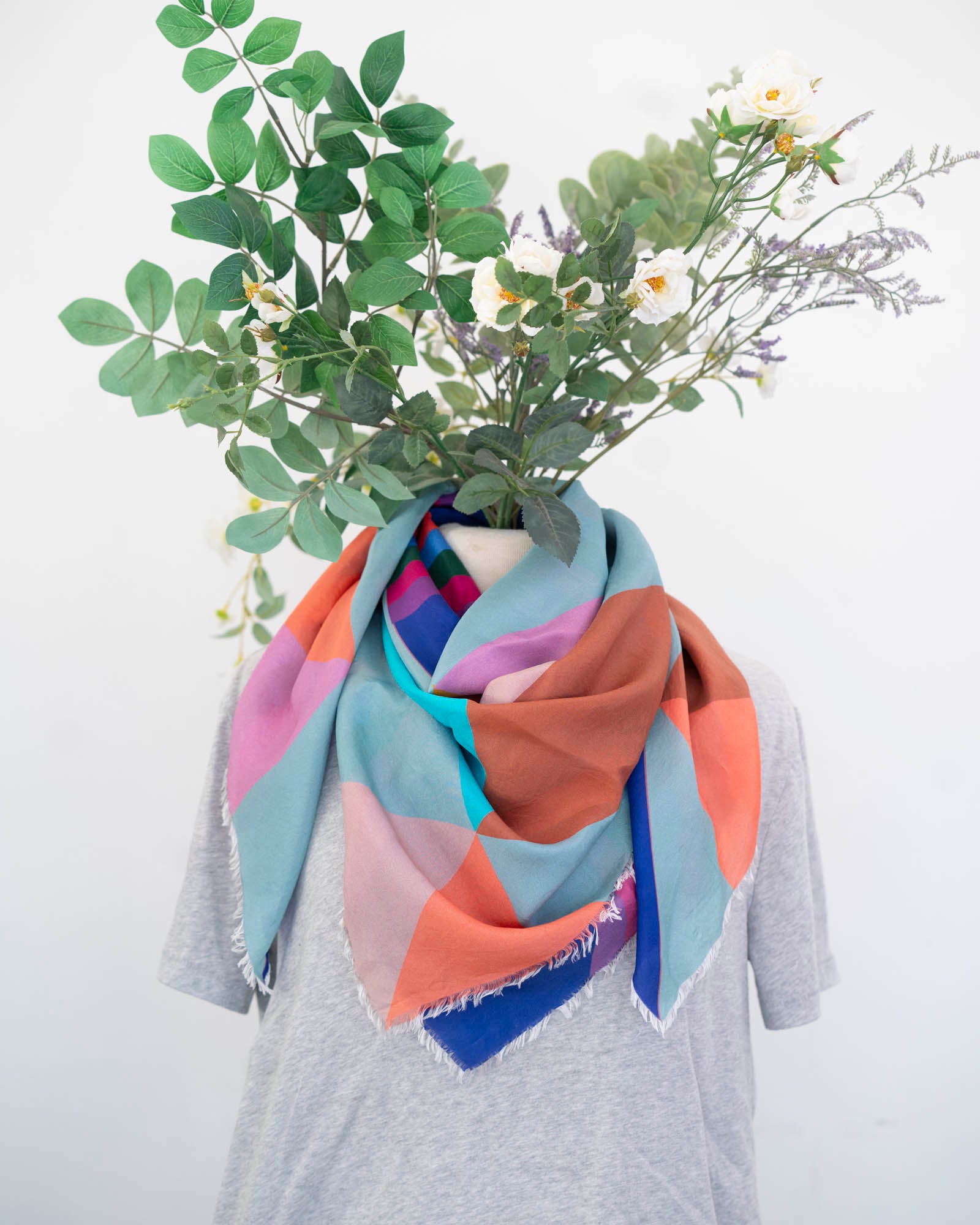 Colourful with a beautiful drape, there are so many ways to wear this scarf. Embrace the unique interplay of two totally different colour palettes and geometric designs.
