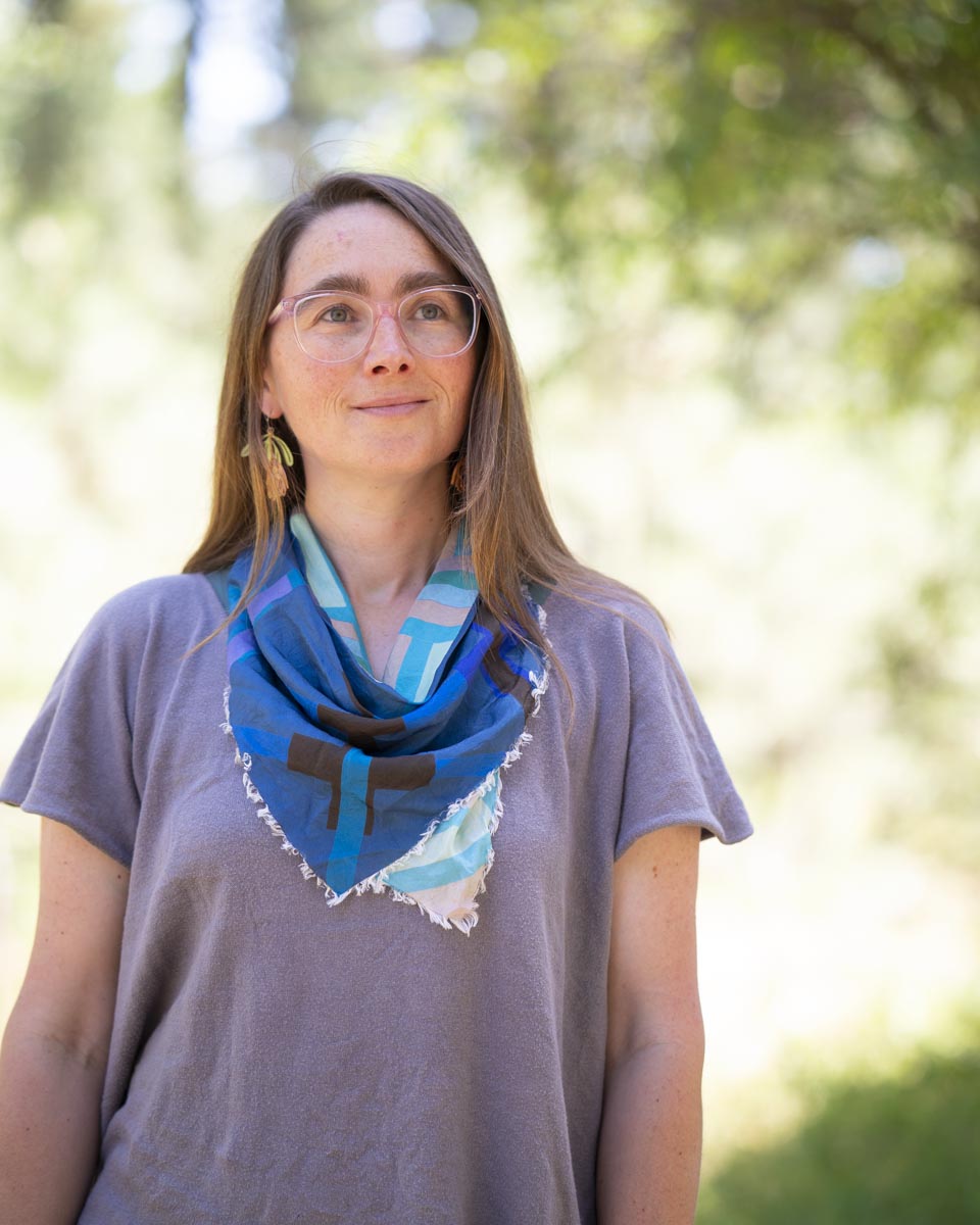 The geometric patterns were designed by Jess, cut and fringed in Truckee, California, the fabric was printed in the UK using GOTS Ecocare certified inks.