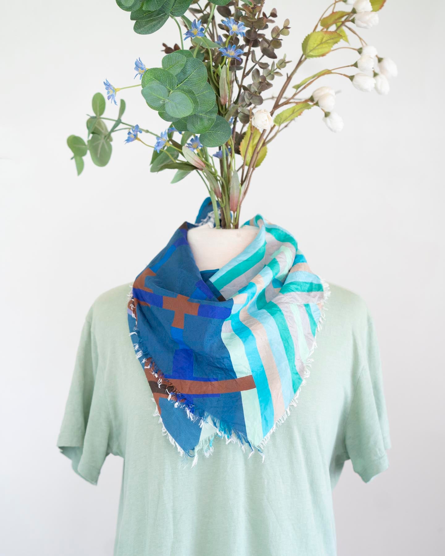 Winter on the Coast Silk Bandana Scarf - Crossed