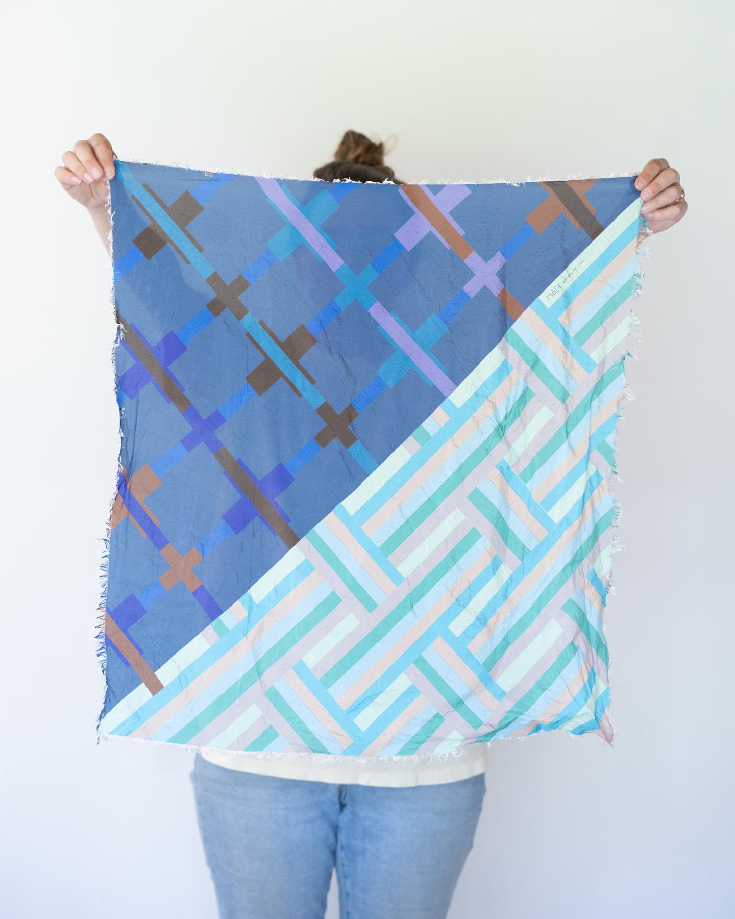 Colourful with a beautiful drape, there are so many ways to wear this scarf. Embrace the unique interplay of two totally different colour palettes and geometric designs.