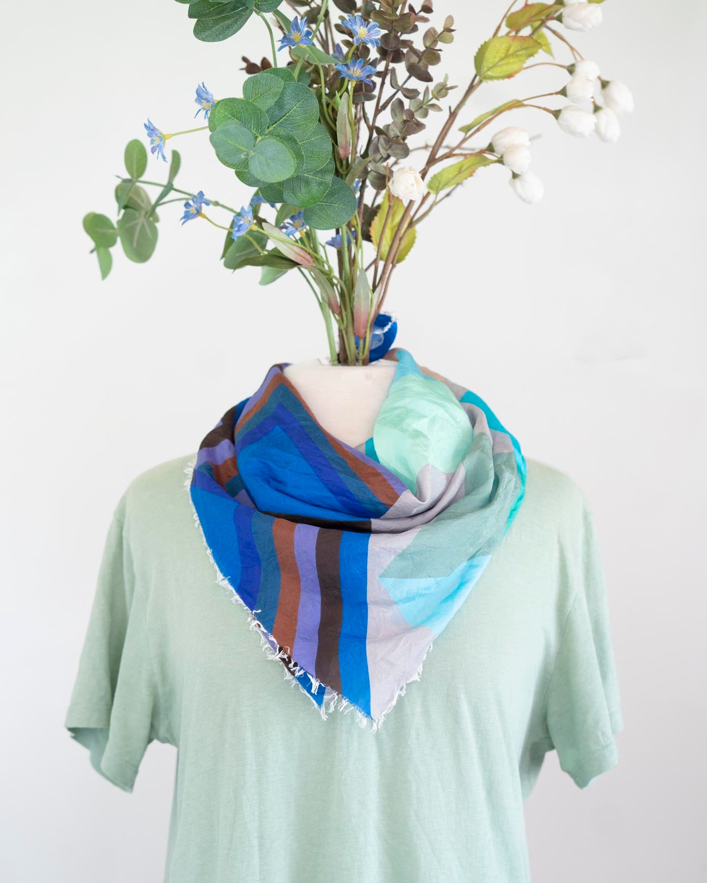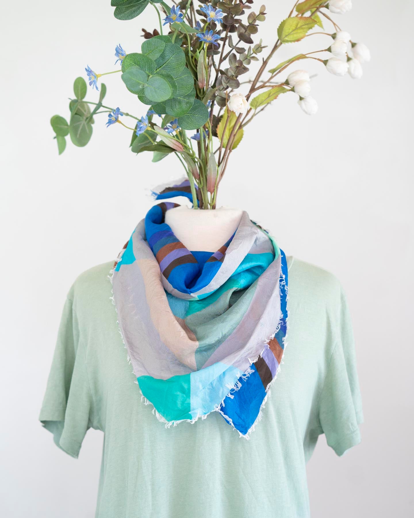 Colourful with a beautiful drape, there are so many ways to wear this scarf. Embrace the unique interplay of two totally different colour palettes and geometric designs.