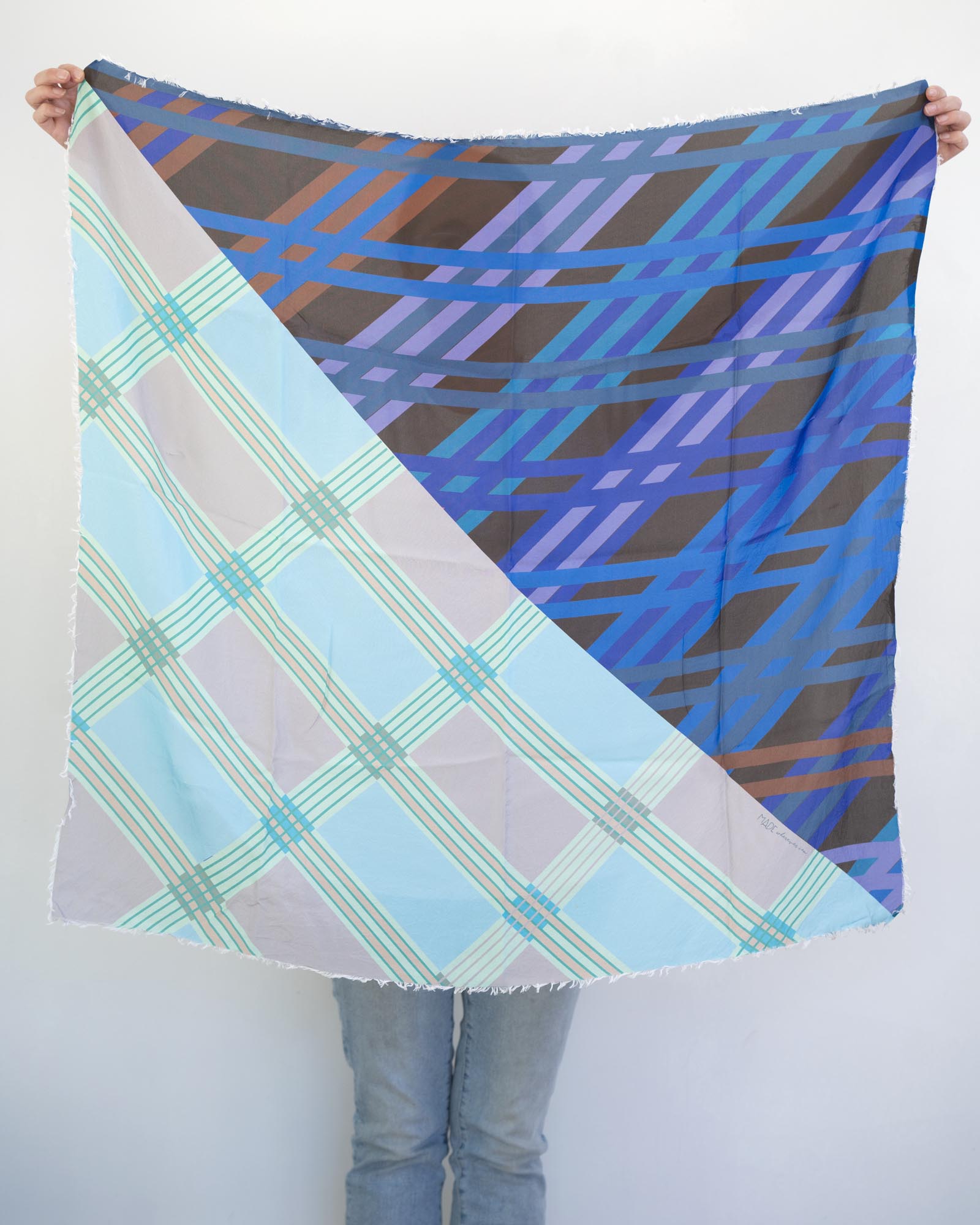 Colourful with a beautiful drape, there are so many ways to wear this scarf. Embrace the unique interplay of two totally different colour palettes and geometric designs.