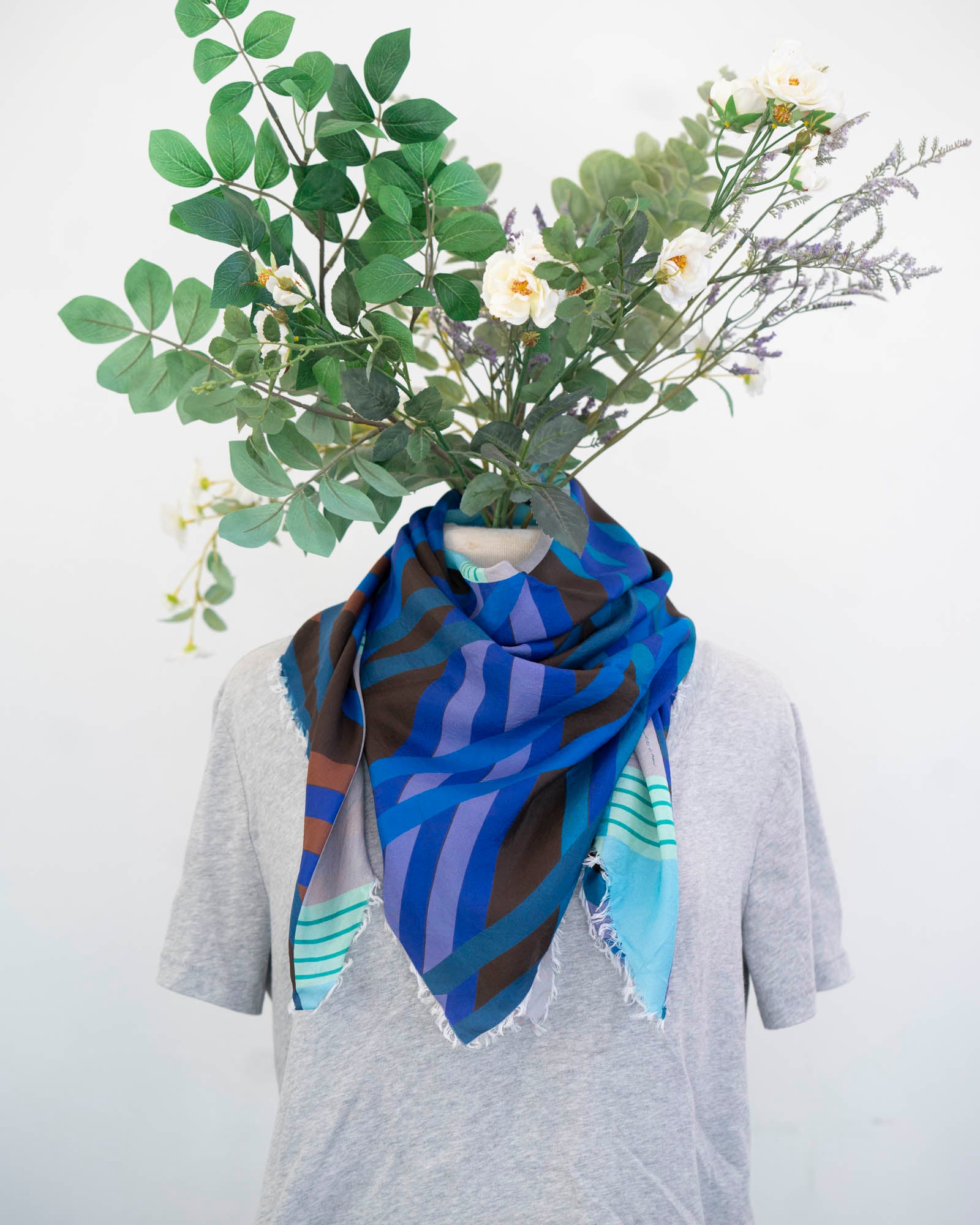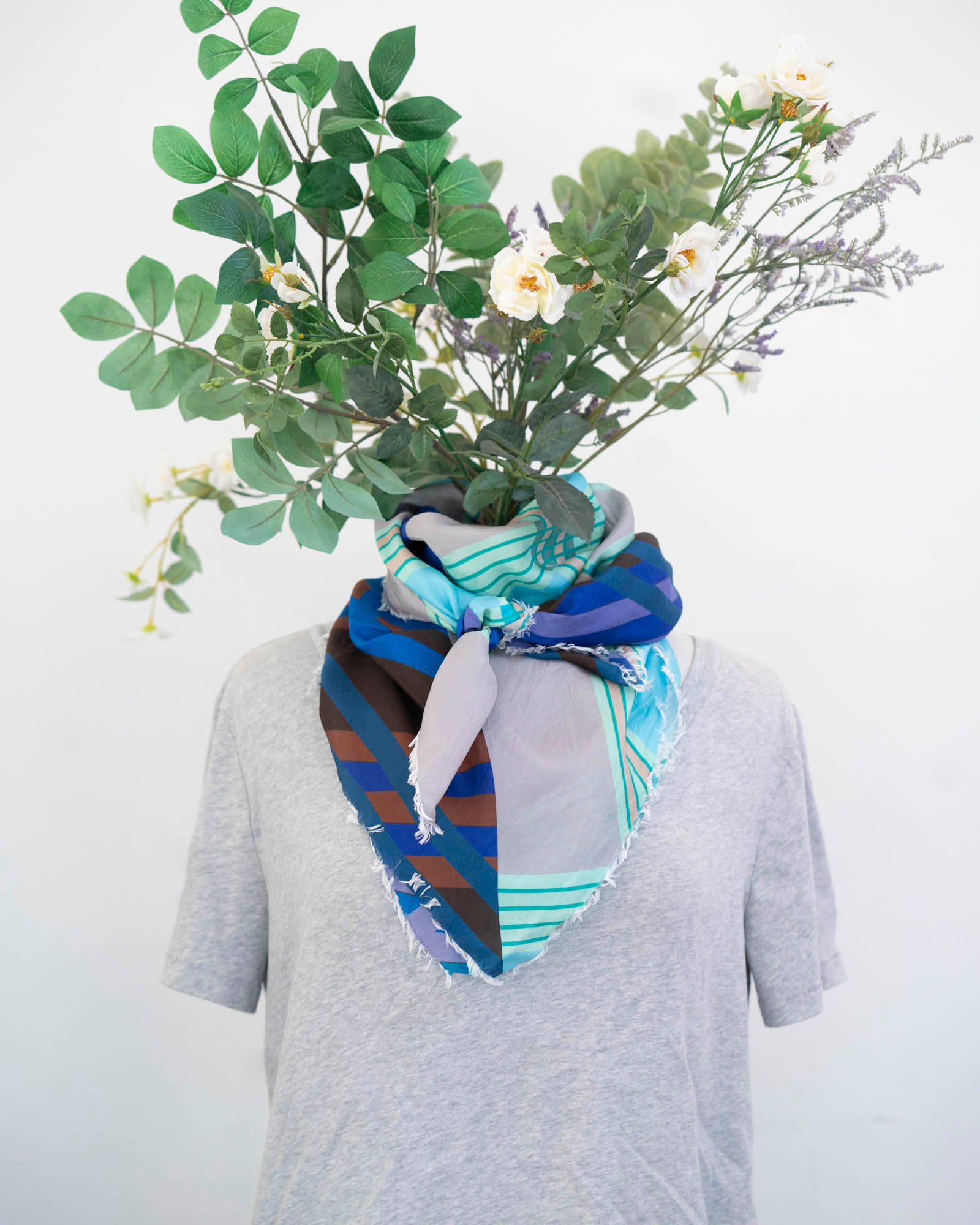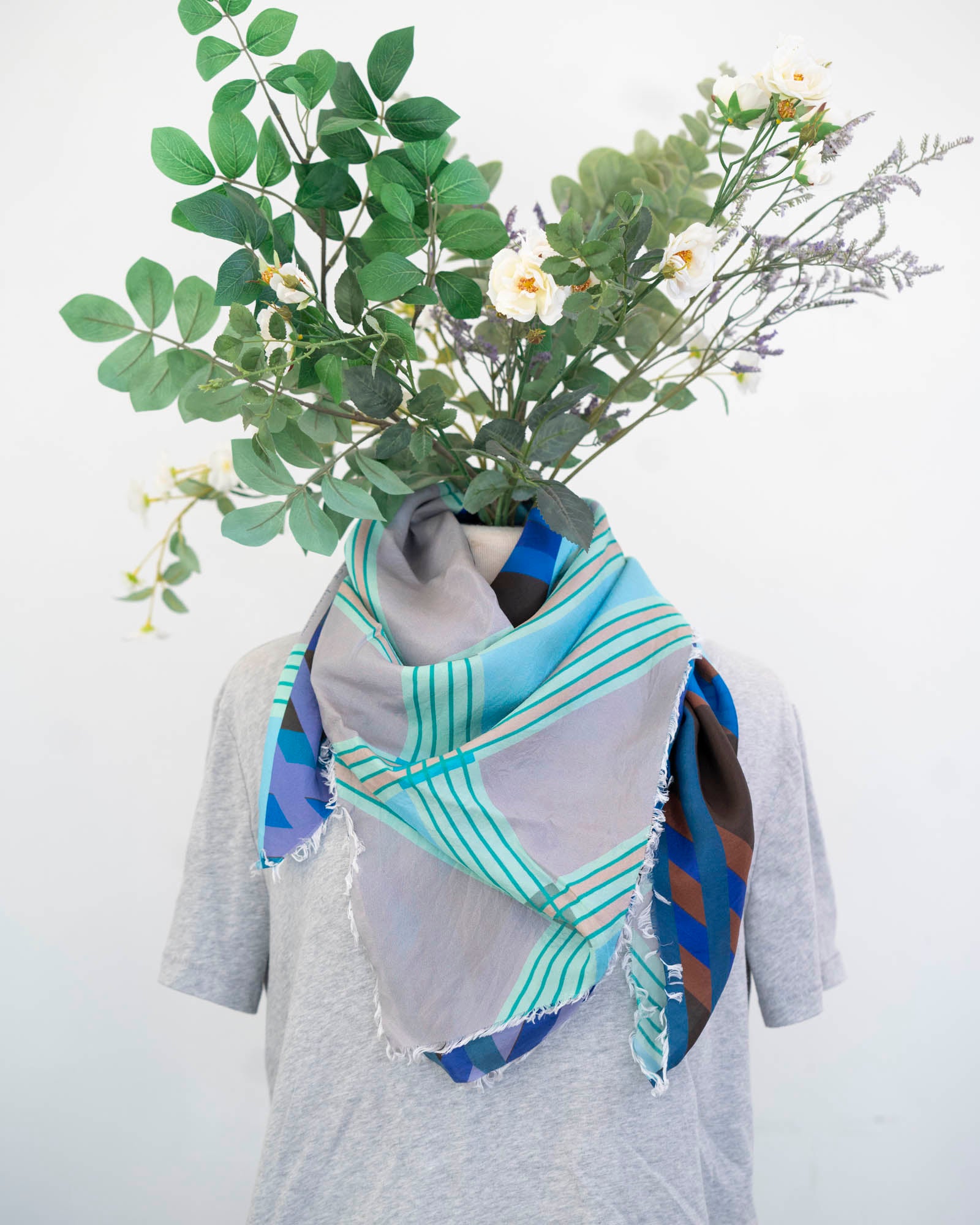 Winter on the Coast Silk Wild Rag Scarf - Stripes