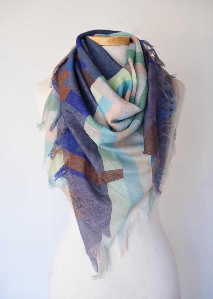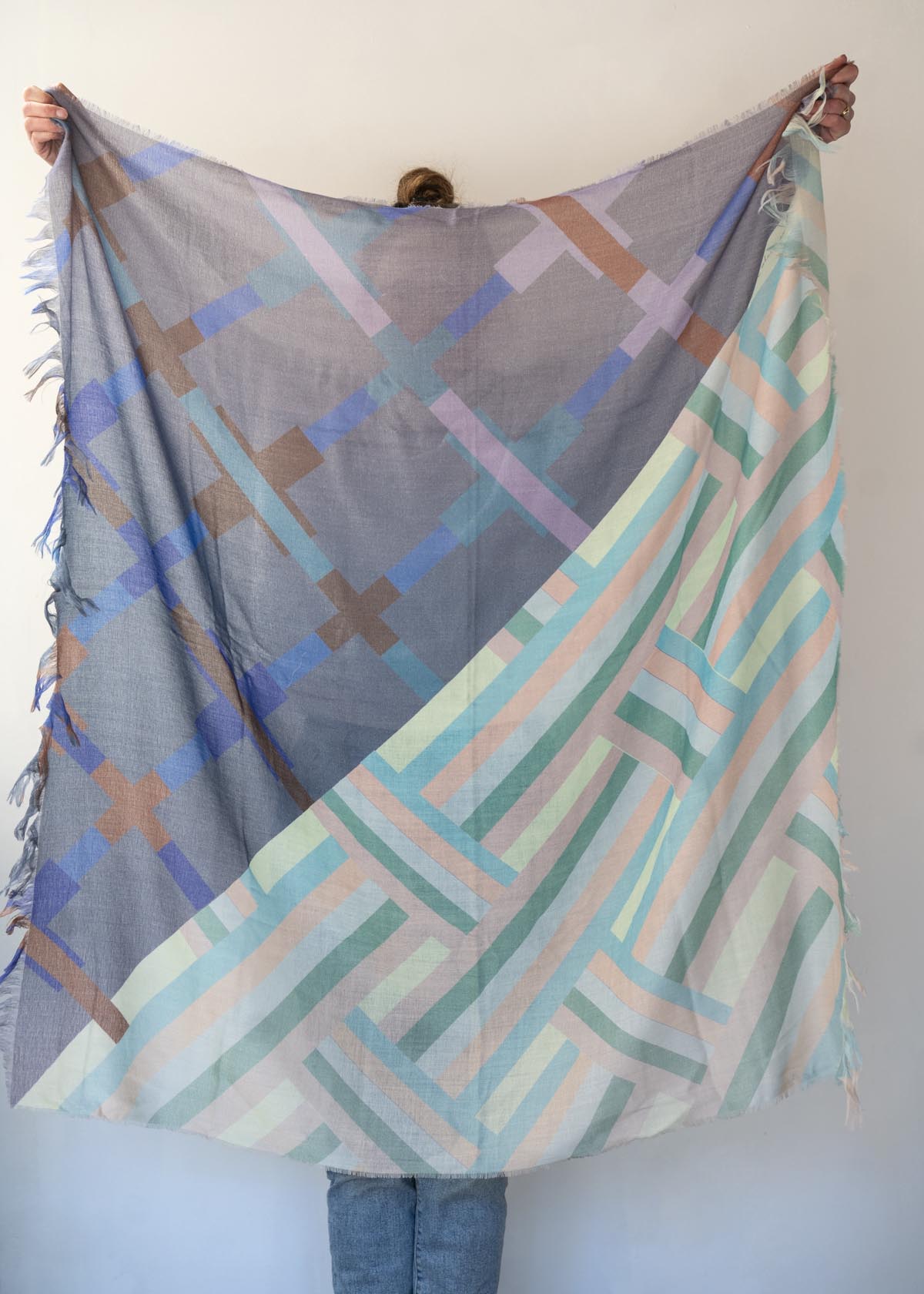 A luscious, soft and colourful blanket scarf. Embrace the unique interplay of two totally different colour palettes and geometric designs.