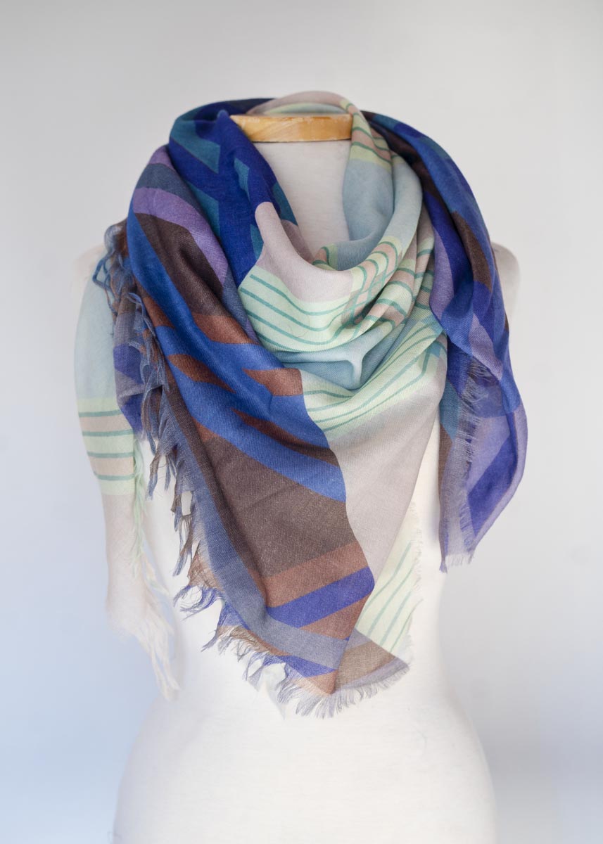 A luscious, soft and colourful blanket scarf. Embrace the unique interplay of two totally different colour palettes and geometric designs.