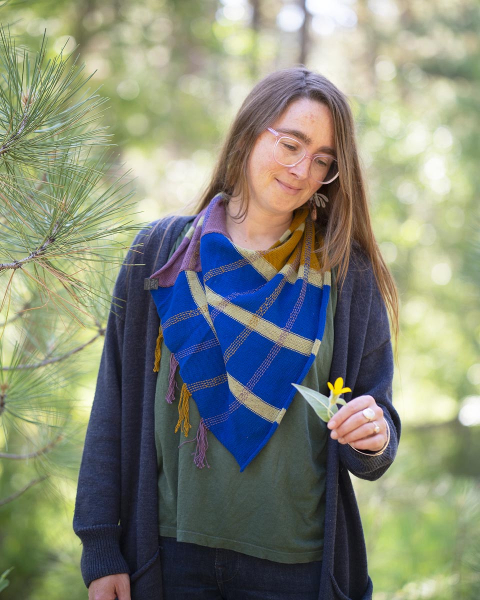 Knit on a knitting machine and then hand woven for the stripe effect.